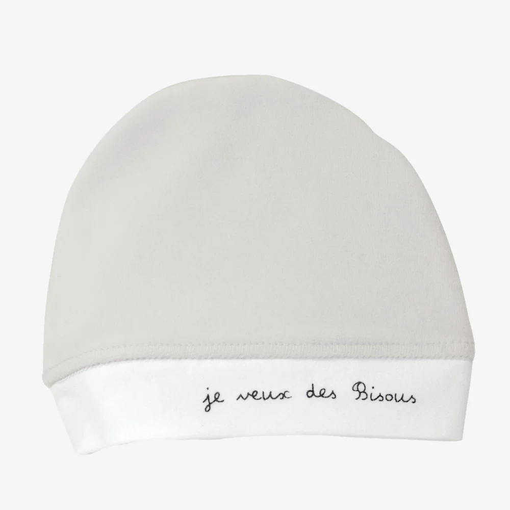 Bonnet naissance je veux des bisous gris