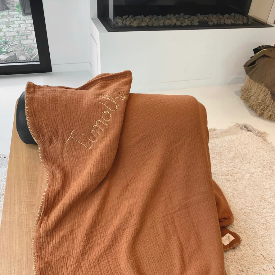 GRAND PLAID GAZE DE COTON – CANNELLE