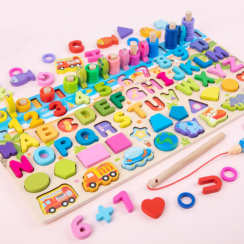 6 in 1 LogicBoard de KIDCADO est bon pour développer les compétences de tri précoce, telles que la reconnaissance des lettres, des couleurs, des nombres, des formes, des animaux, des moyens de transport, des fruits, ….