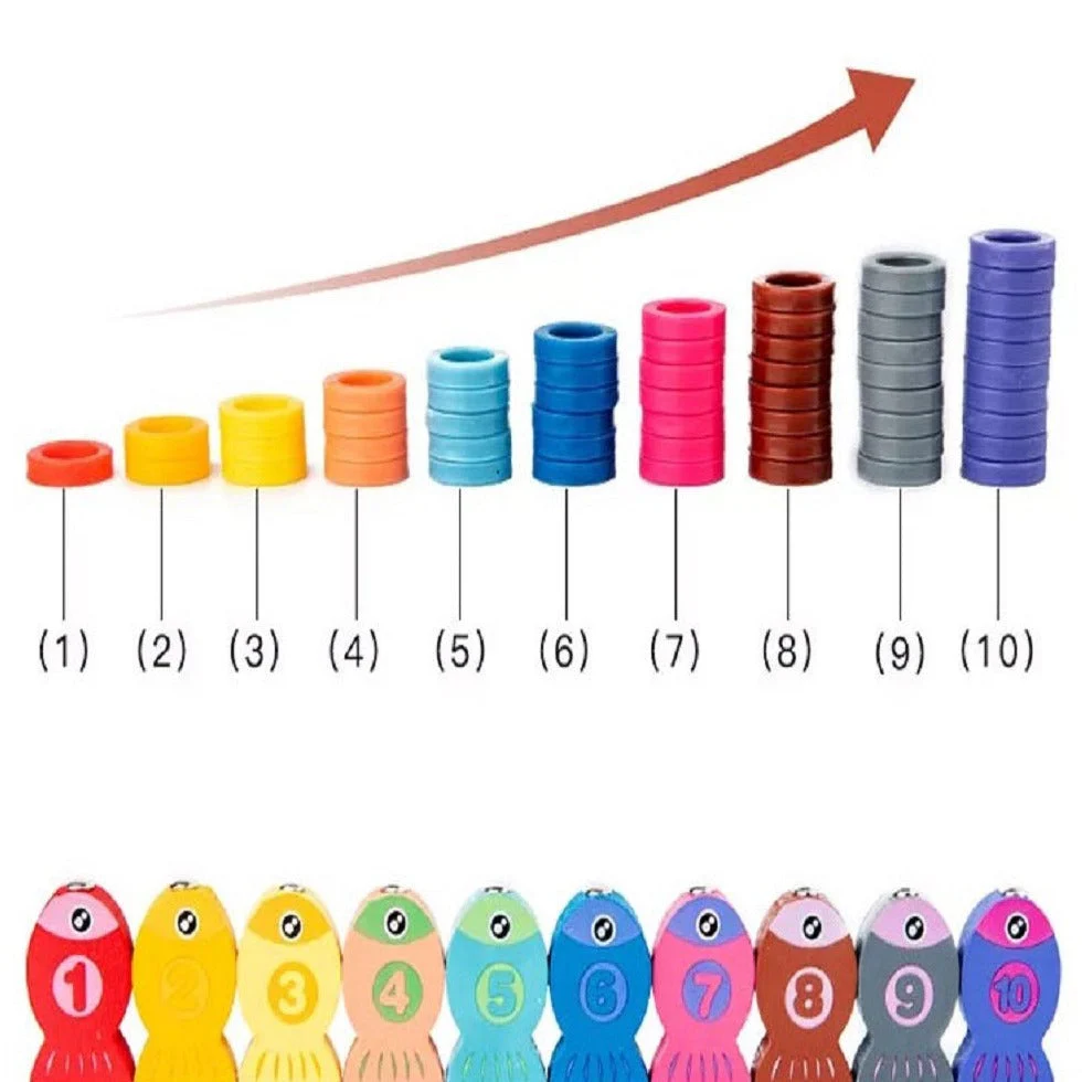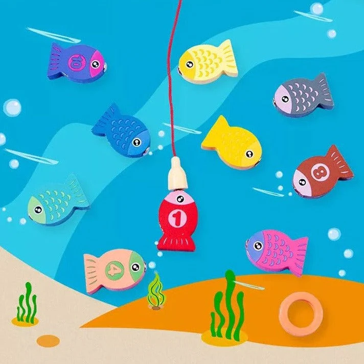 La partie supérieure de Ce Tableau de lettres Multifonctionnel 7 en 1 pour les enfants, comporte un jeu de pêche magnétique, où les enfants peuvent attraper des poissons et des anneaux magnétiques à l’aide d’une canne à pêche.