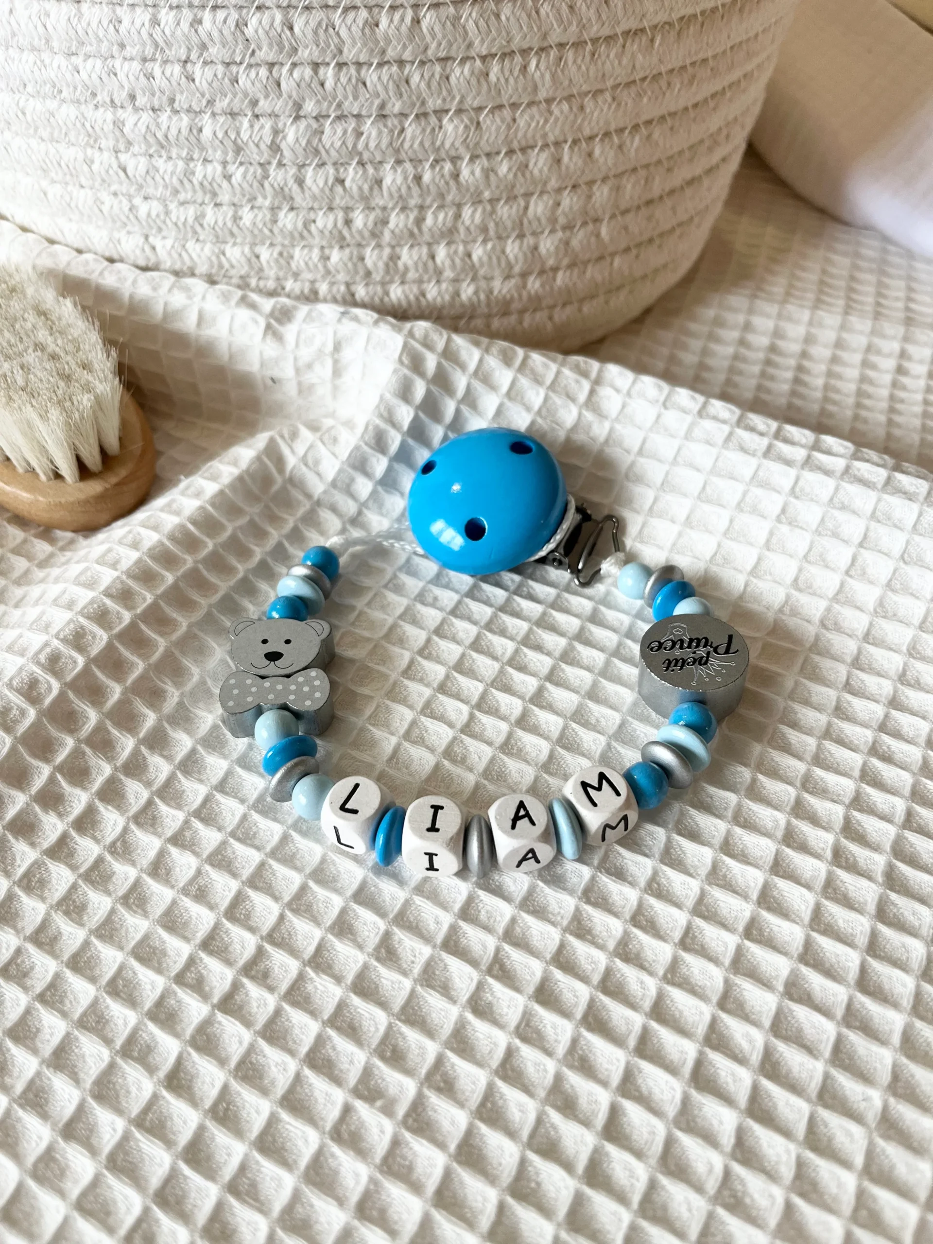 Grâce à la boucle prévue à cet effet, la tétine reste bien accrochée et toujours accessible pour bébé – et pour les parents 😅