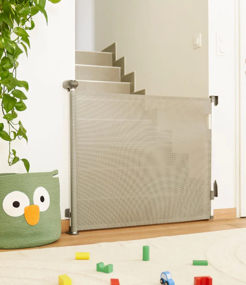 L’ouverture, comme une porte, est facile dans les 2 sens et à une seule main ! Avec sa couleur grise tendance, la barrière s’adapte facilement à tous les intérieurs, il ne vous reste plus qu’à choisir l’emplacement que vous voulez.