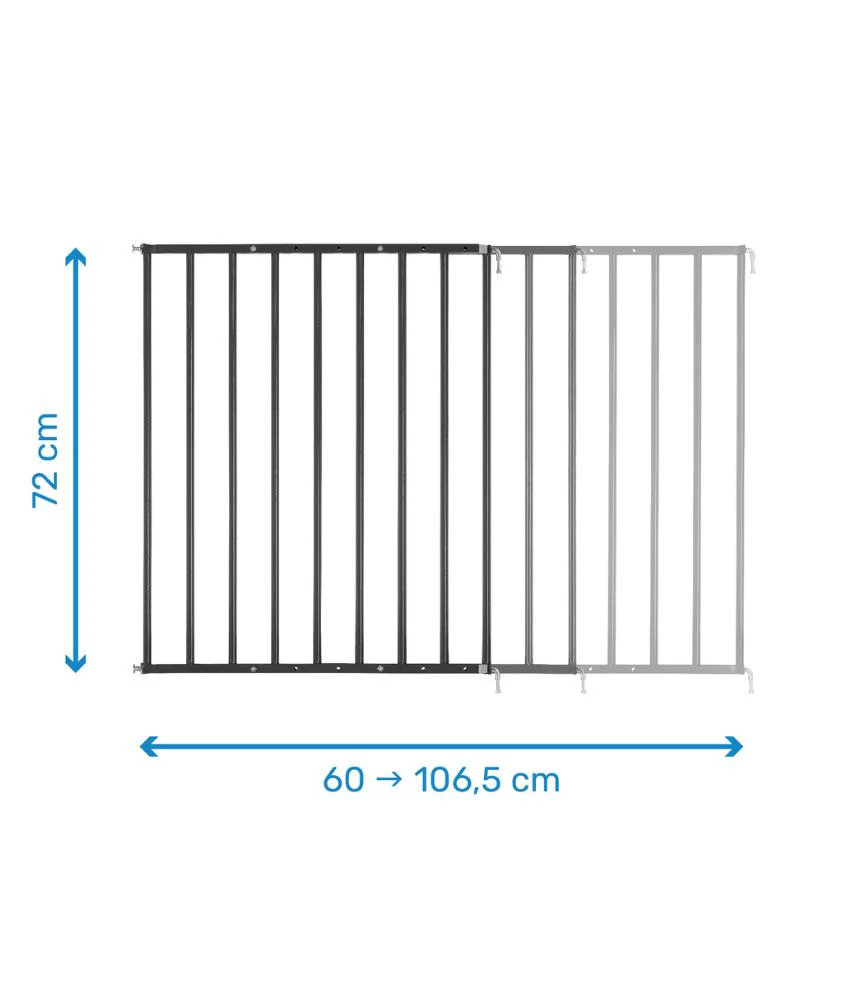 La Barrière de sécurité Safe & Protect XL s’adapte facilement à toutes les ouvertures entre 60 et 107 cm. Sa fixation vis est ultra sécurisée et s’installe en un clin d’œil.