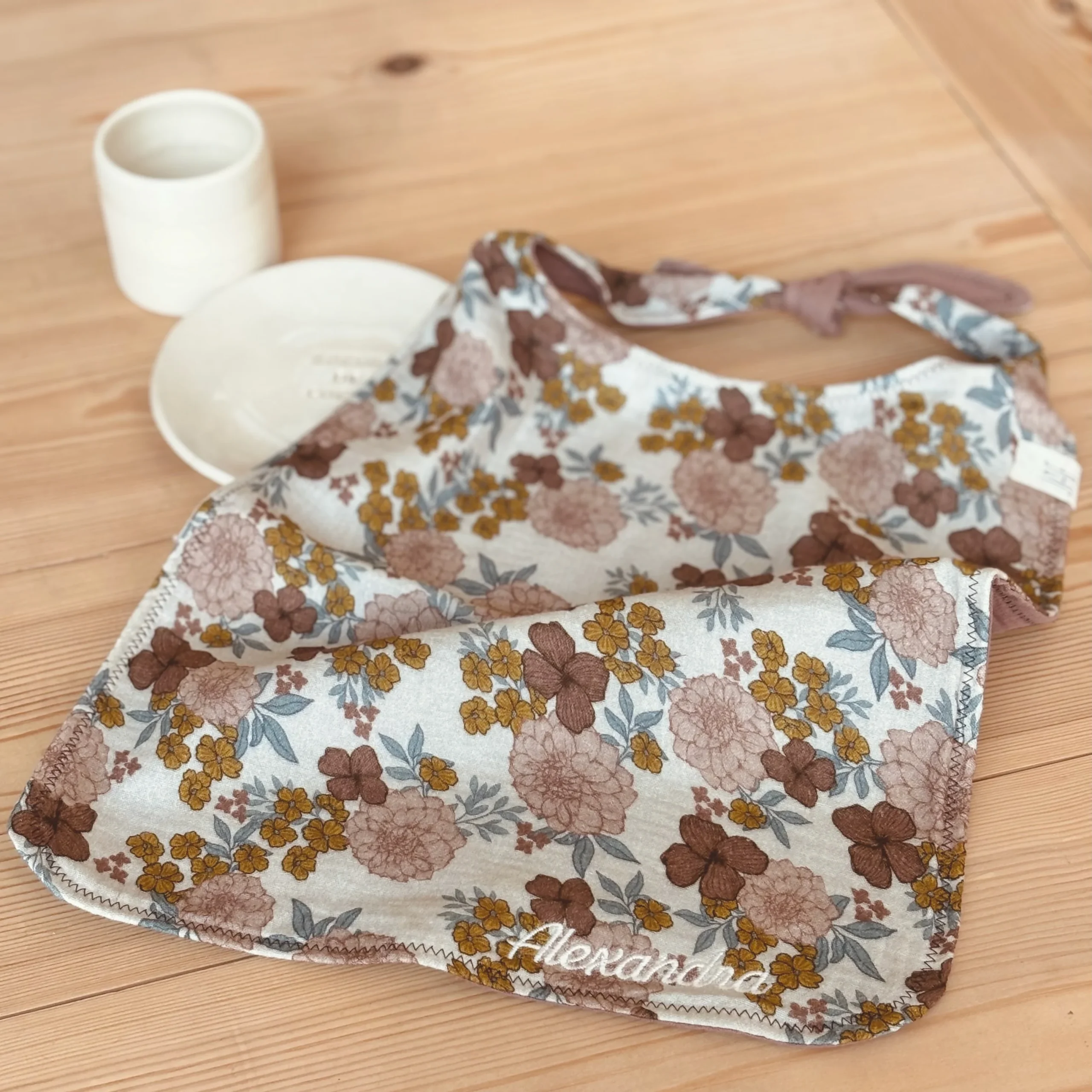 La broderie se situe en bas à droite du bavoir sur 5 cm environ.