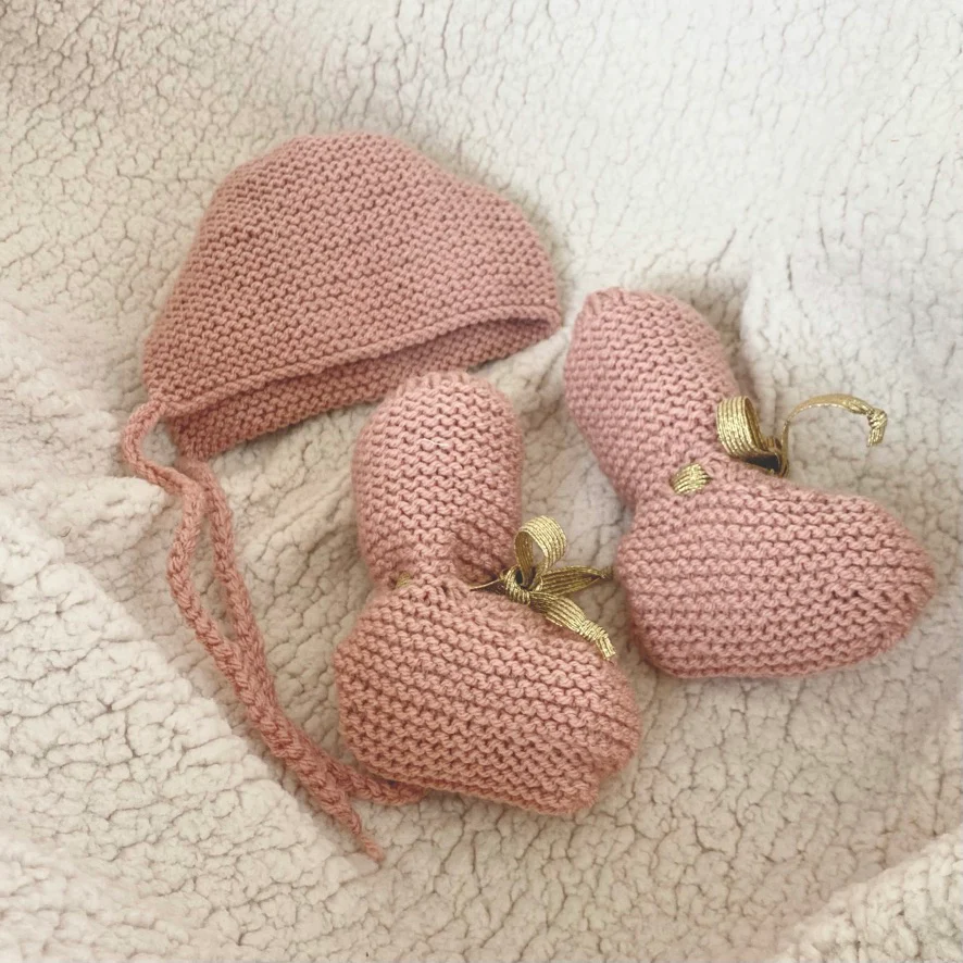 Ensemble chaussons et béguin en tricot pour bébé de 0 à 6 mois