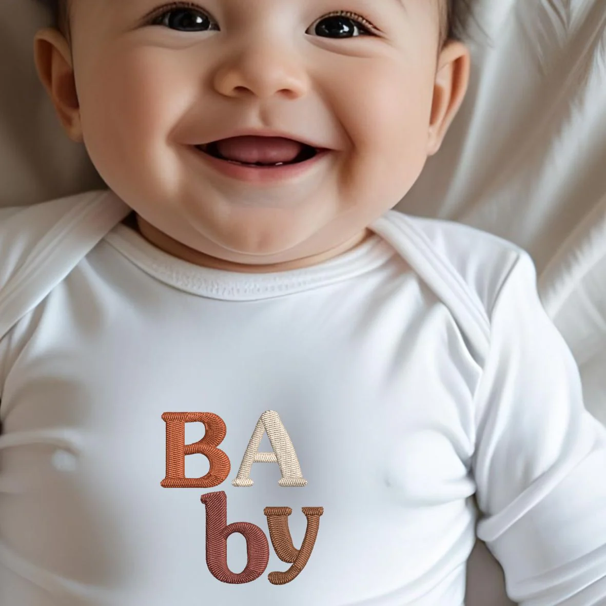 Body bébé manches longues en maille single jersey. Col rond et bas en côte 1×1. Fermeture par bouton à pression à l’entrejambe. Ouverture croisé à l’épaule.