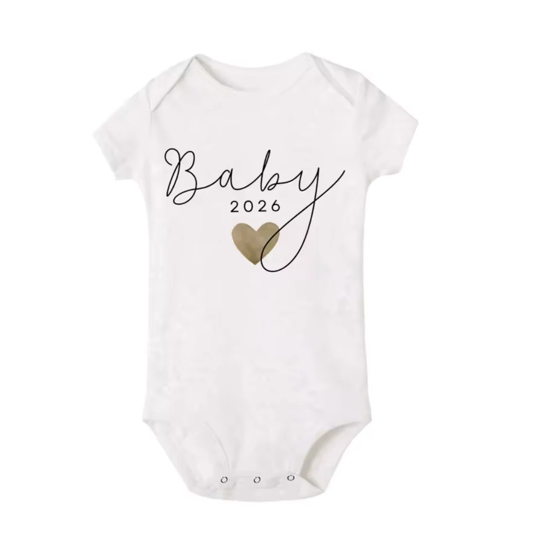 Découvrez notre body bébé en coton, parfait pour annoncer la naissance de votre petit trésor en 2026.