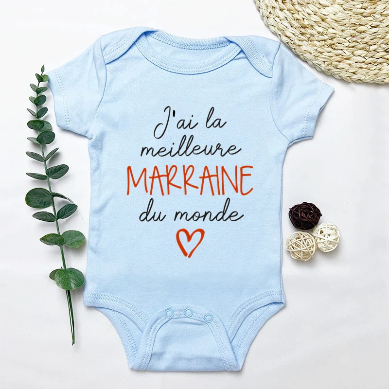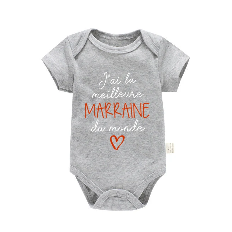 Découvrez notre joli body inscription « j’ai la meilleure marraine du monde » à offrir à un(e) filleul(e) pour une rigolote attention.