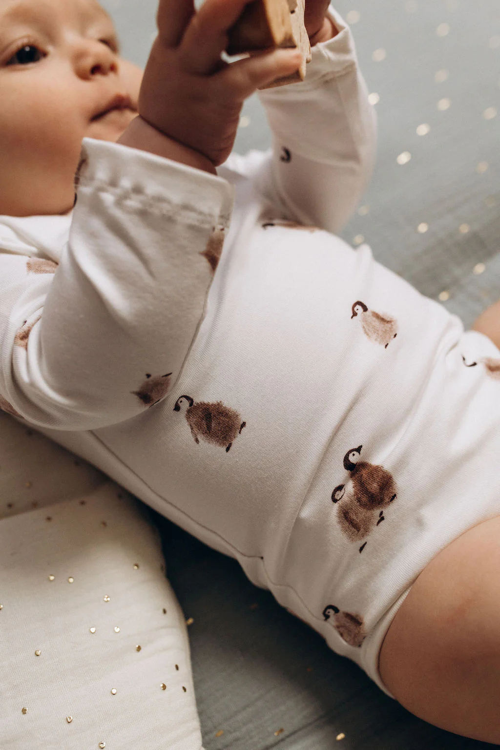 Votre bébé sera à l’aise de jour comme de nuit dans ce body de qualité supérieure fabriqué en France, en jersey de coton écru de qualité incomparable, à jolis motifs animaliers tellement doux et facile à enfiler grâce à son tissu très souple et son encolure pressionnée !