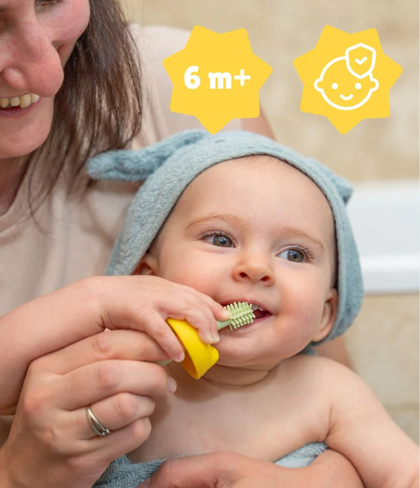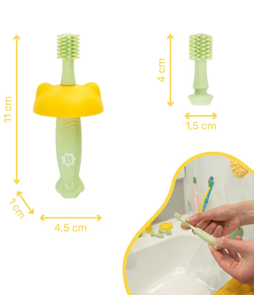 Optez pour la brosse à dents évolutive Badabulle, l’accessoire idéal pour une hygiène dentaire confortable et ludique dès les premiers mois.