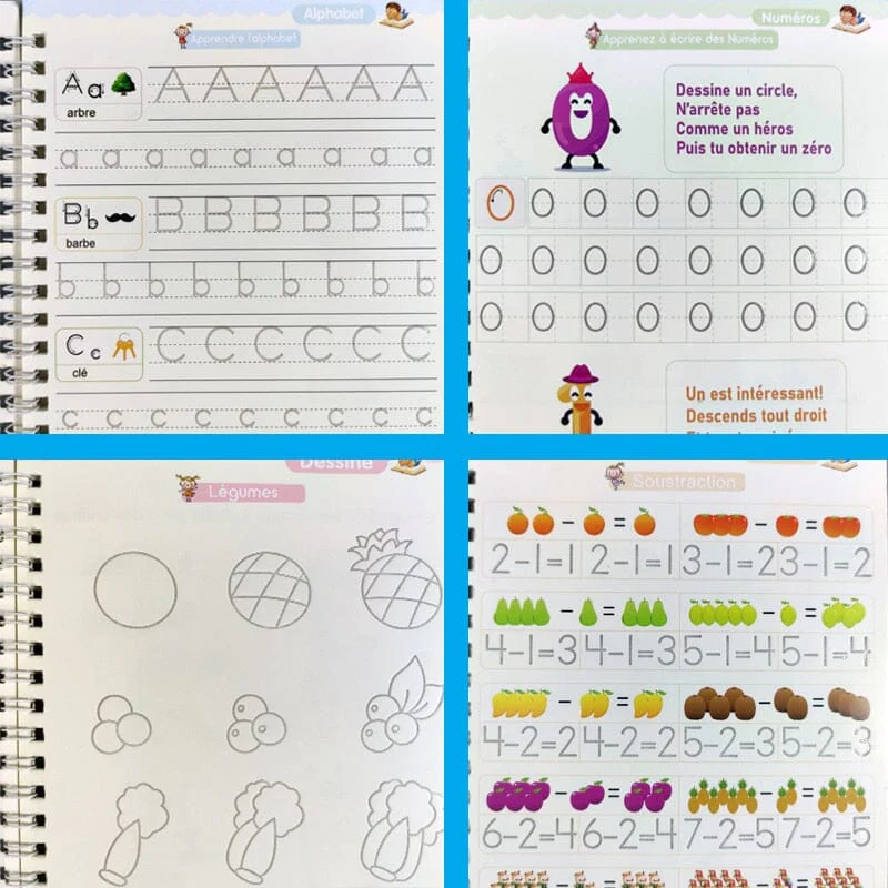 4 Cahiers d’écriture magique (Alphabet, Nombres, Mathématiques, Dessin)