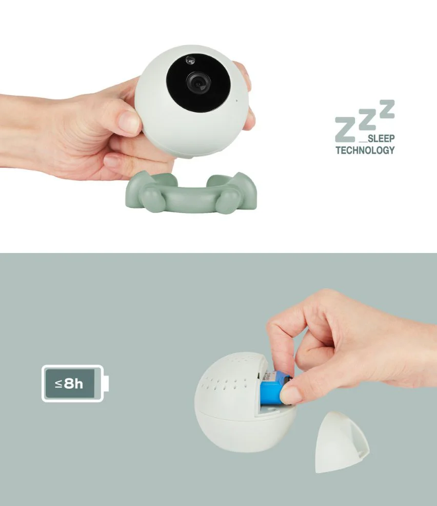 La caméra fonctionne sur batterie rechargeable pour encore plus de liberté. Pas besoin de trouver une prise à proximité et fini les câbles électriques à brancher pour faire fonctionner votre babyphone, vous n’aurez qu’à le recharger de temps en temps, comme votre téléphone portable.