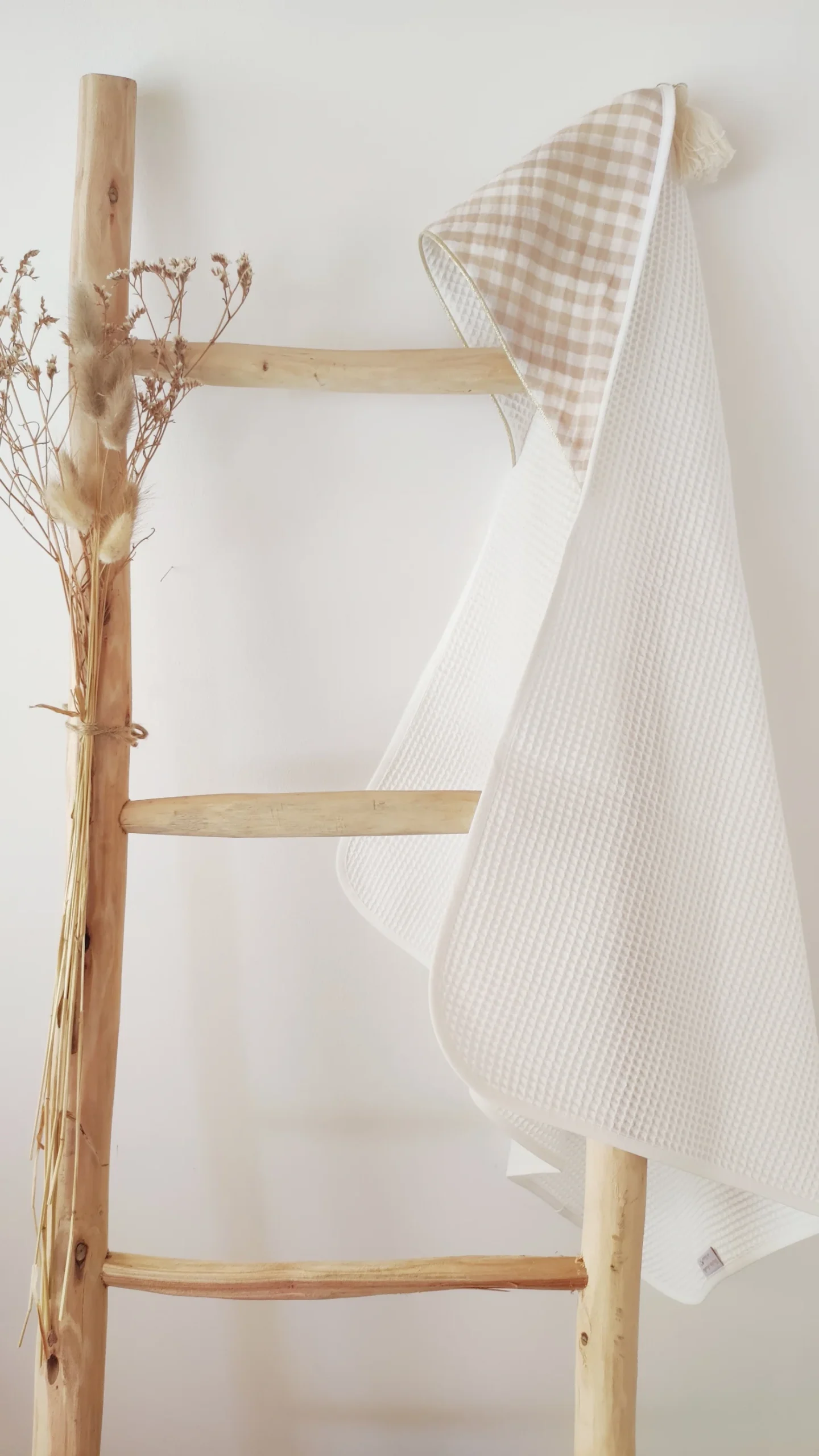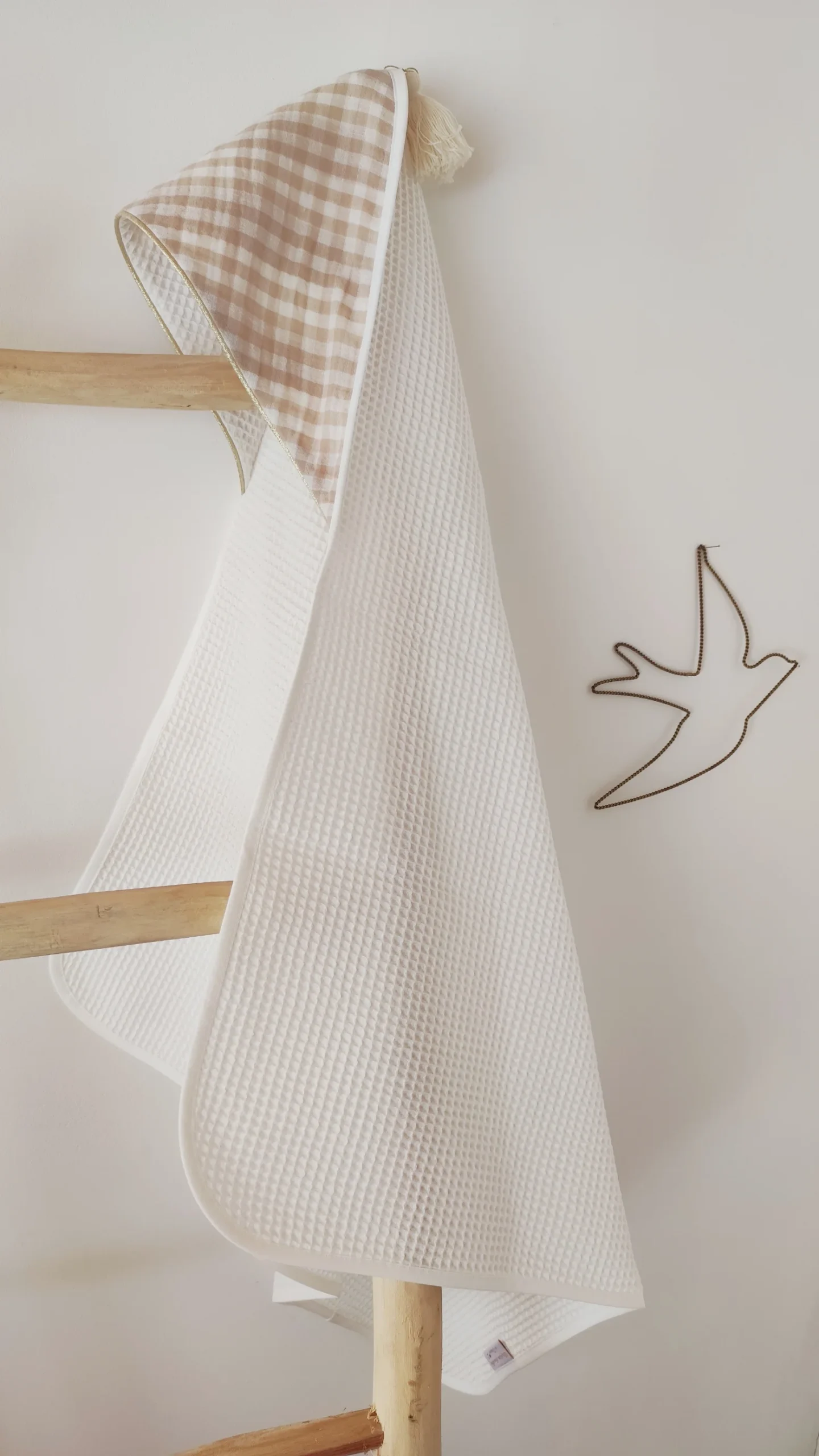 Un magnifique style bohème pour cette très jolie cape de bain en coton éponge nid d’abeille Biologique et double gaze de coton Oeko-Tex.
