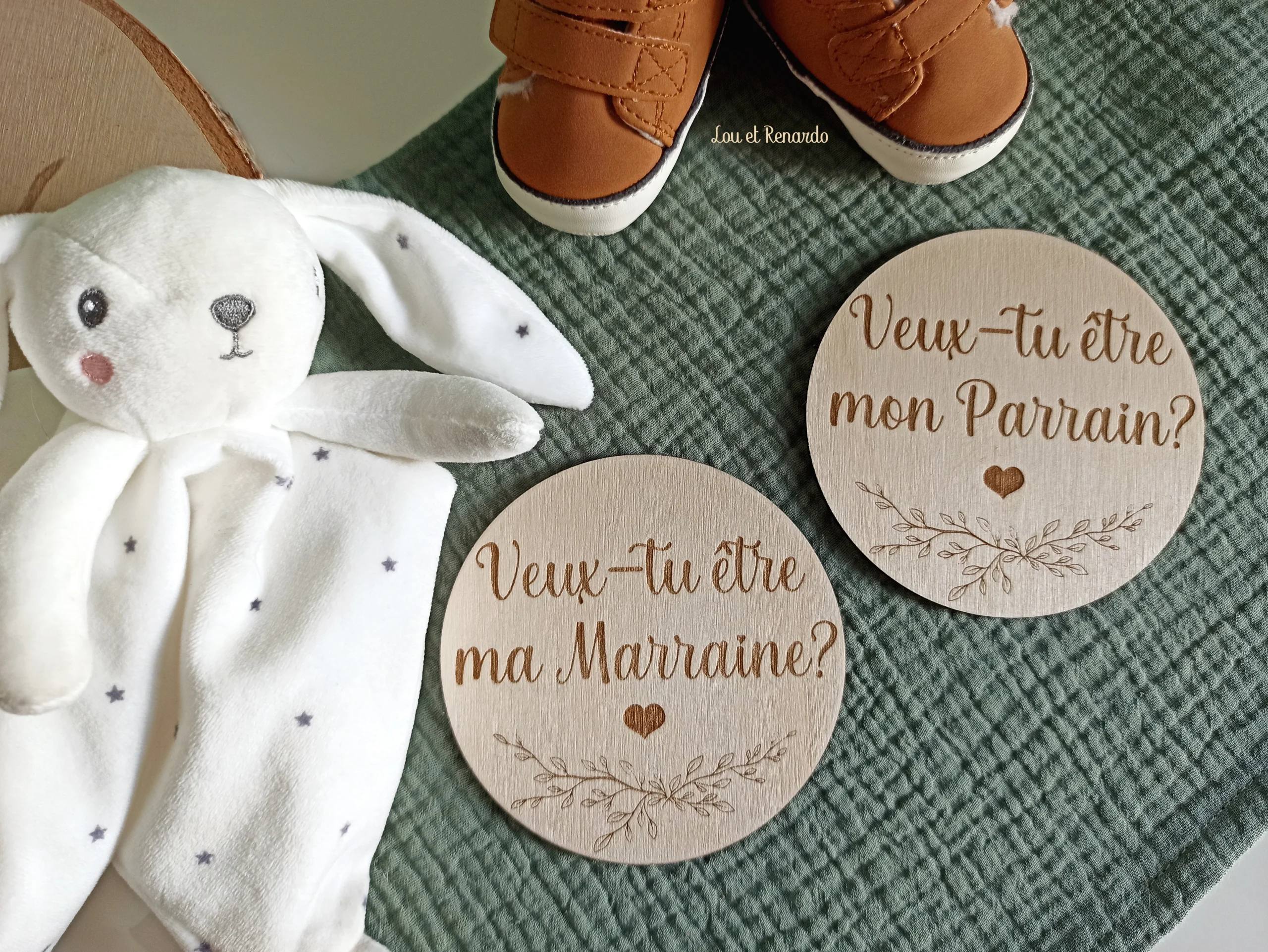 Bébé vient d’arriver et vous souhaitez annoncer de manière originale le nom de la Marraine et du Parrain de votre enfant sur une photo?