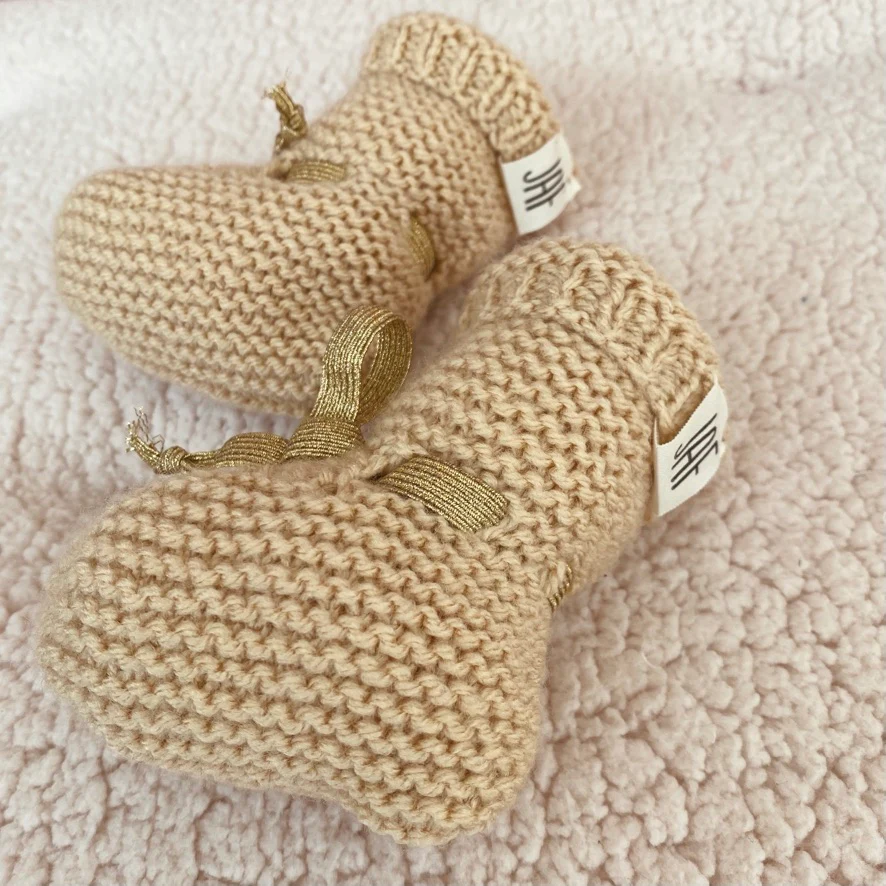 Grace aux liens de serrage élastiques, nous proposons un modèle confortable sans compression et qui tient aux pieds de bébé.