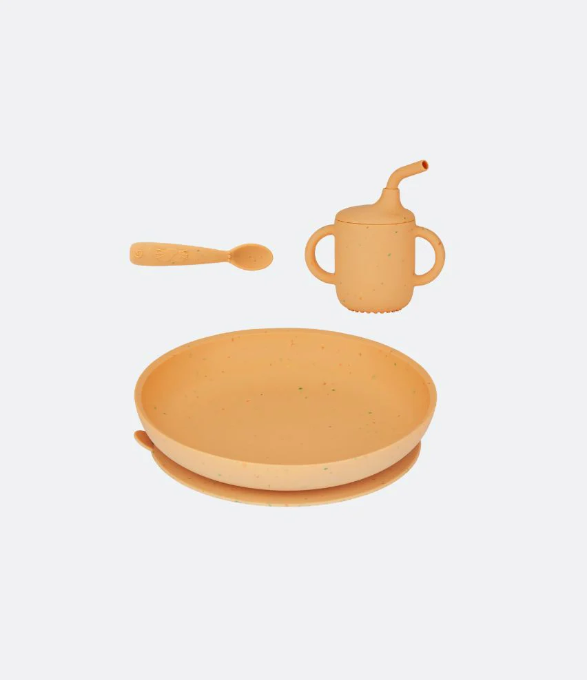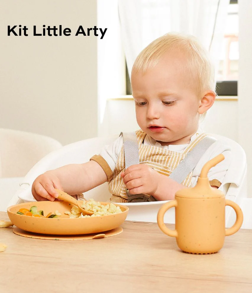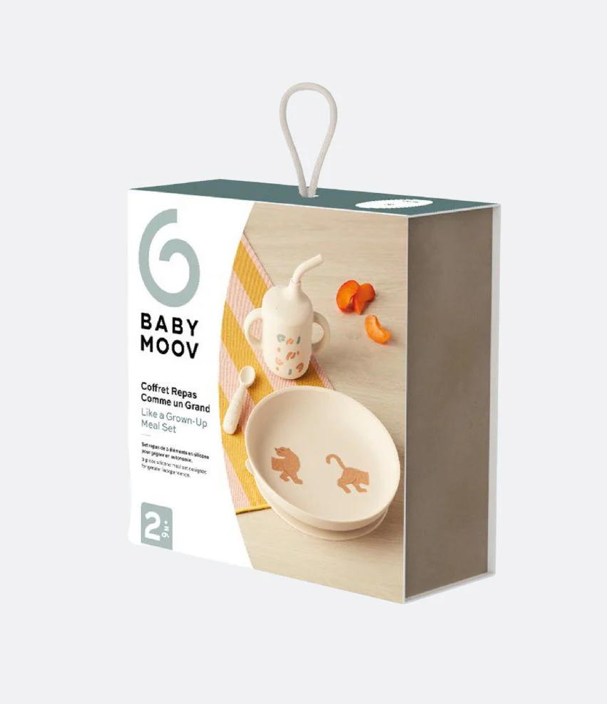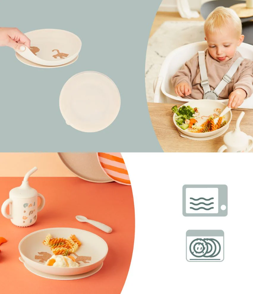 Composé de trois accessoires essentiels, il facilite l’apprentissage des repas : l’assiette à rebord aide l’enfant à prendre la nourriture plus facilement grâce à son bord pratique et sa base antidérapante, la tasse évolutive 3-en-1 s’adapte à chaque étape de l’apprentissage de la boisson, et la cuillère ergonomique, développée en collaboration avec une ergothérapeute, encourage l’autonomie des petites mains.