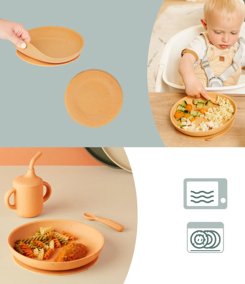Grâce à sa fabrication 100% silicone, ce kit est résistant et passe au lave-vaisselle pour un usage quotidien sans contrainte. L’ensemble est évolutif : il accompagne l’enfant au fil de sa croissance, à la maison comme en déplacement.