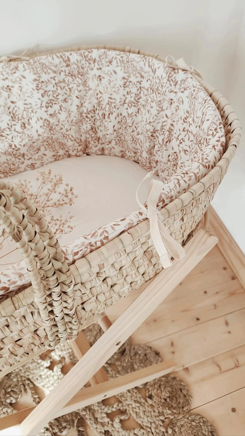 Le couffin tressé ne nécessite pas d’entretien. En cas de tâche frotter doucement avec du savon doux et un peu d’eau. Essuyer ensuite le surplus d’eau délicatement.