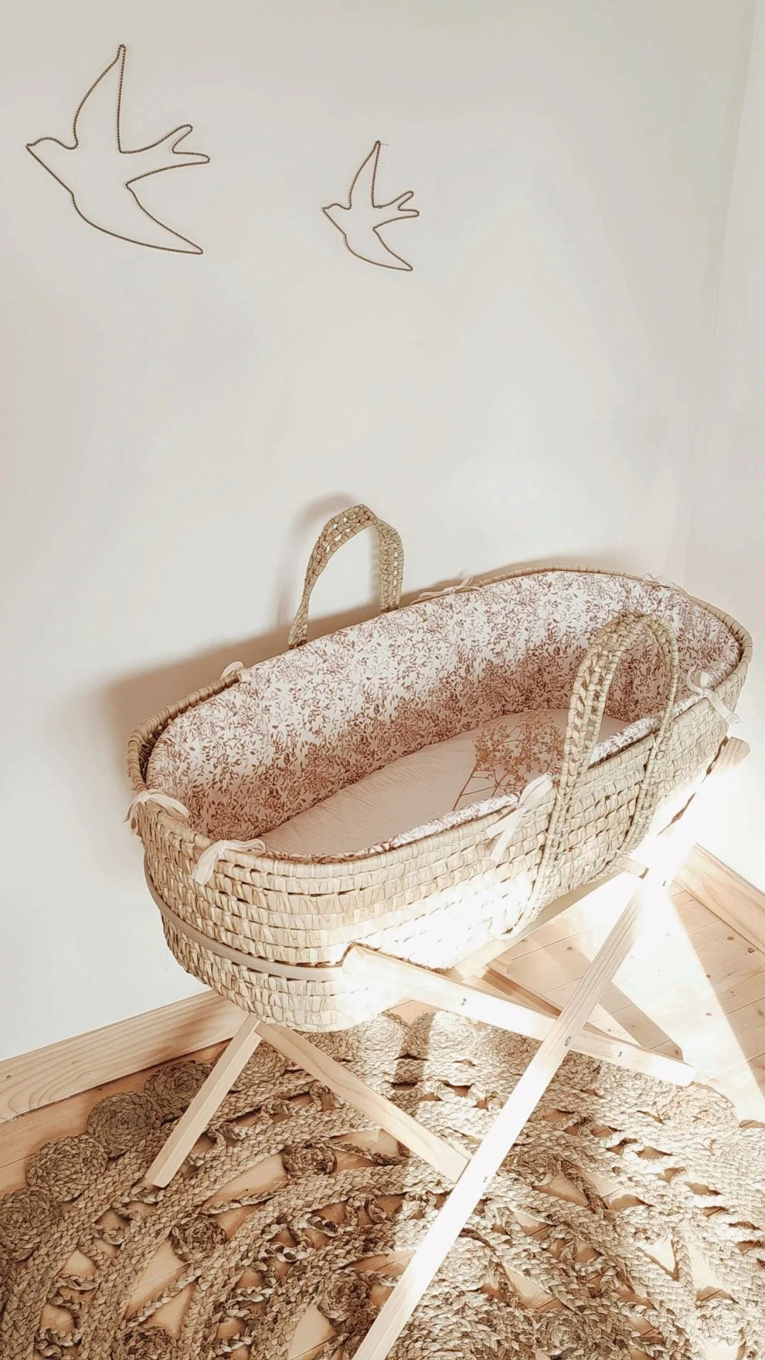 Avec ce joli couffin tressé et son habillage complet aux teintes douces, préparez en douceur le cocon de bébé afin de fêter au mieux son arrivée !