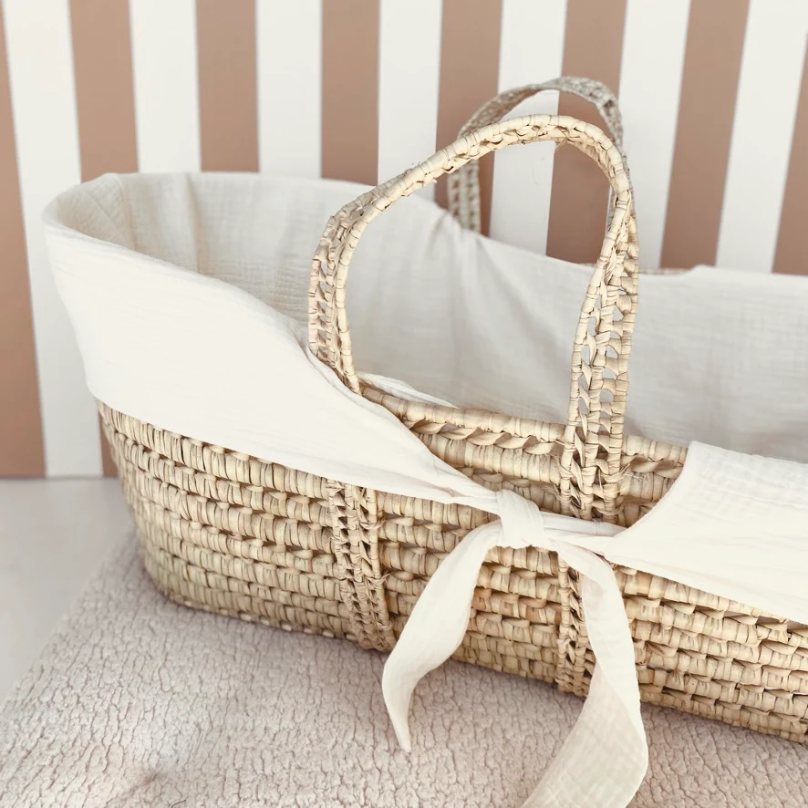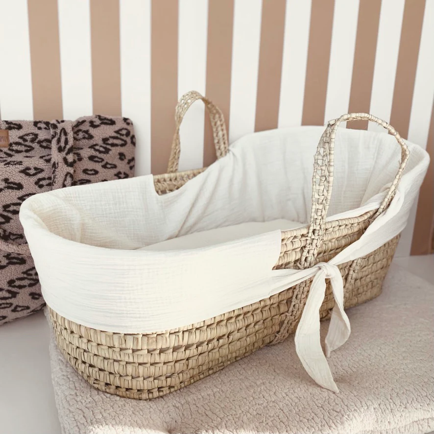 Le couffin MOWGLI houssé accueille votre bébé de 0 à 6 mois en toute sécurité grâce à notre housse respirante en double gaze qui contient un matelas inséré dans un double fond. Plus d’épaisseurs superflues, tout est intégré !