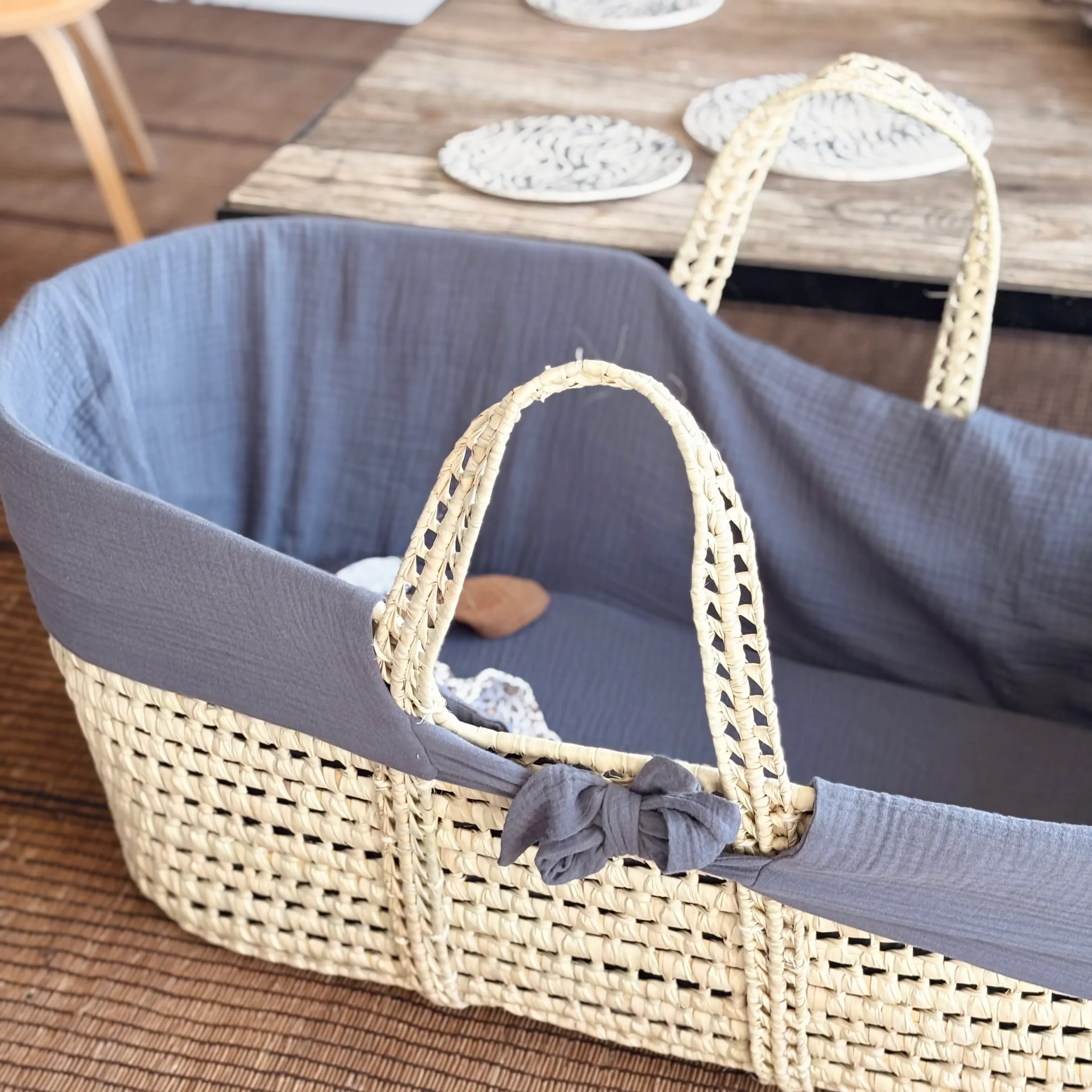 Le couffin MOWGLI houssé accueille votre bébé de 0 à 6 mois en toute sécurité grâce à notre housse respirante en double gaze qui contient un matelas inséré dans un double fond. Plus d’épaisseurs superflues, tout est intégré !