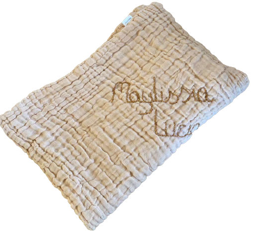 Cette couverture brodée main est neuve, et du fond de son carton, elle attend juste d’être adoptée par un petit « Sandro » 🙂 Couverture moelleuse en triple gaze de coton. Dans un berceau, sur un fauteuil, en promenade ou en sortant du bain, elle garde les petits bien au chaud grâce à ses 6 couches de […]