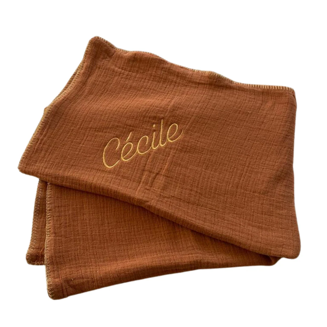 Cette couverture brodée est neuve mais a un petit accroc, elle attend juste d’être adoptée par une petite « Cécile » 🙂 Couverture moelleuse en triple gaze de coton. Dans un berceau, sur un fauteuil, en promenade ou en sortant du bain, elle garde les petits bien au chaud grâce à ses 6 couches de gaze de […]