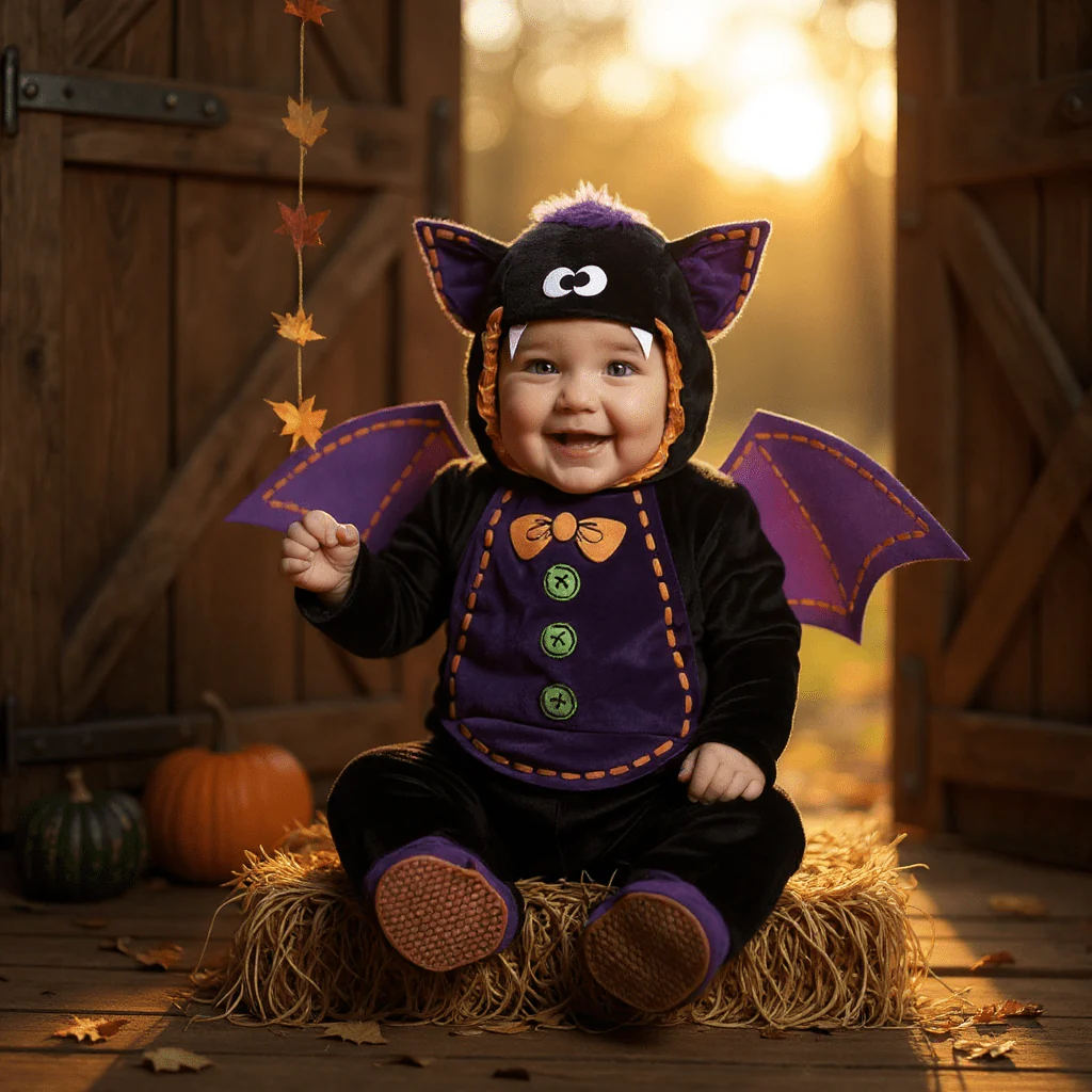 Conçu pour allier confort, praticité et style, ce costume transforme votre enfant en une adorable petite chauve-souris, parfaite pour émerveiller famille et amis lors des fêtes costumées, séances photos ou soirées Halloween.
