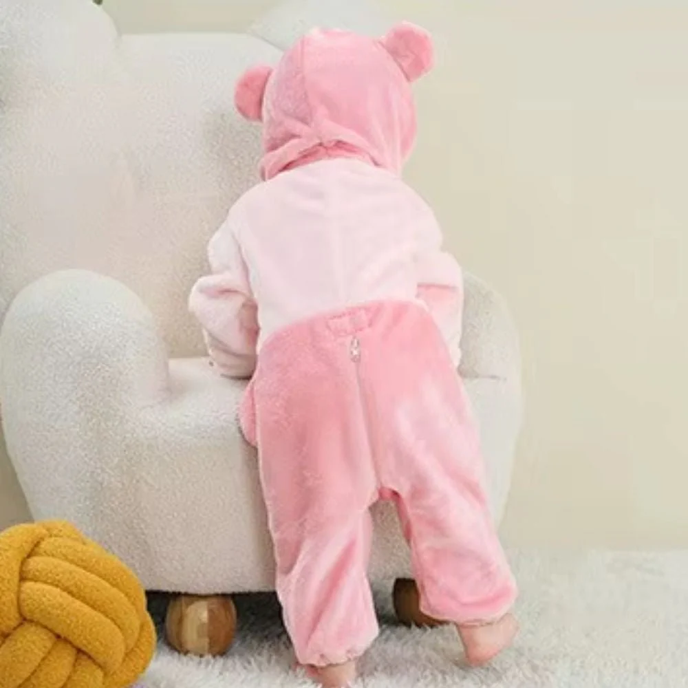déguisement halloween bébé fille ours rose – combinaison peluche à capuche, zip frontal