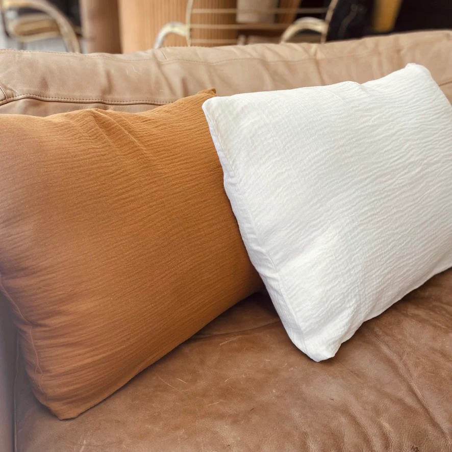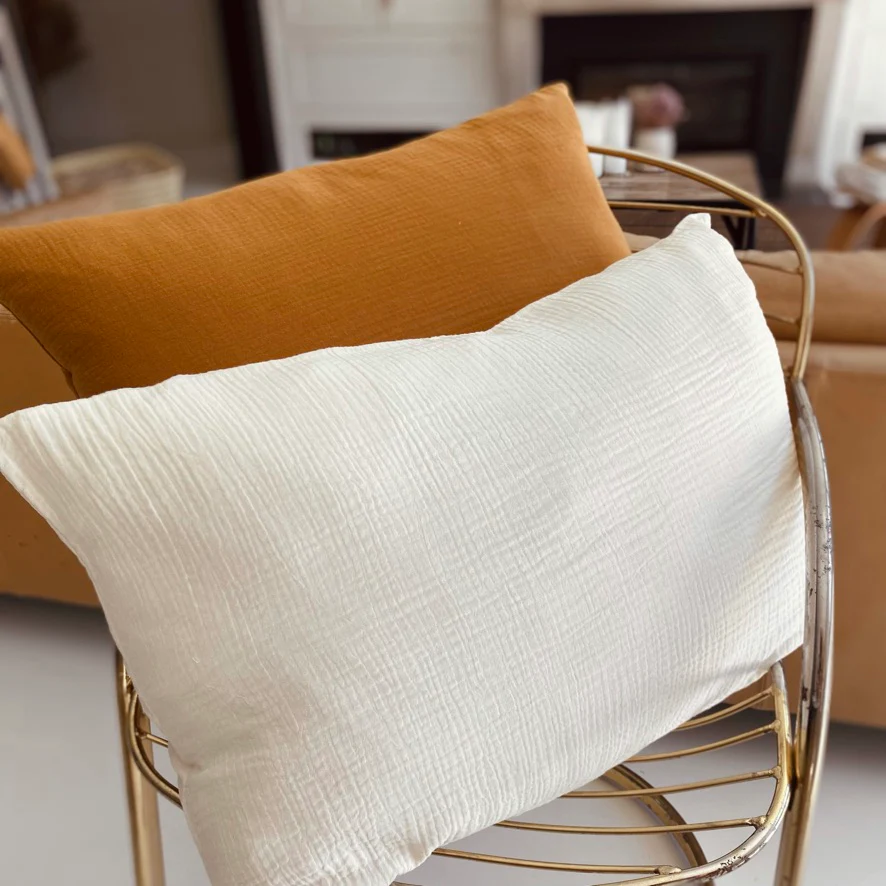 Coussins personnalisés en double gaze de coton, 60x40cm. Notre garnissage est également fabriqué en France à Lille