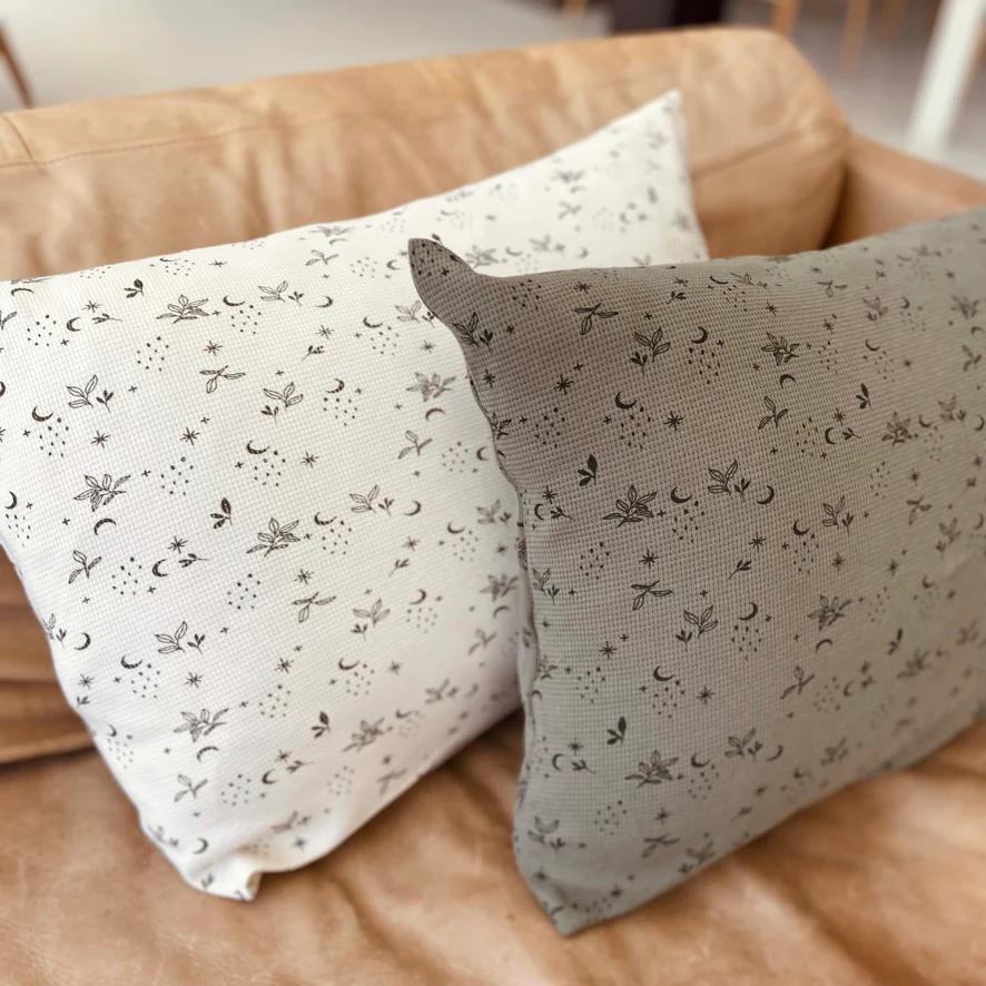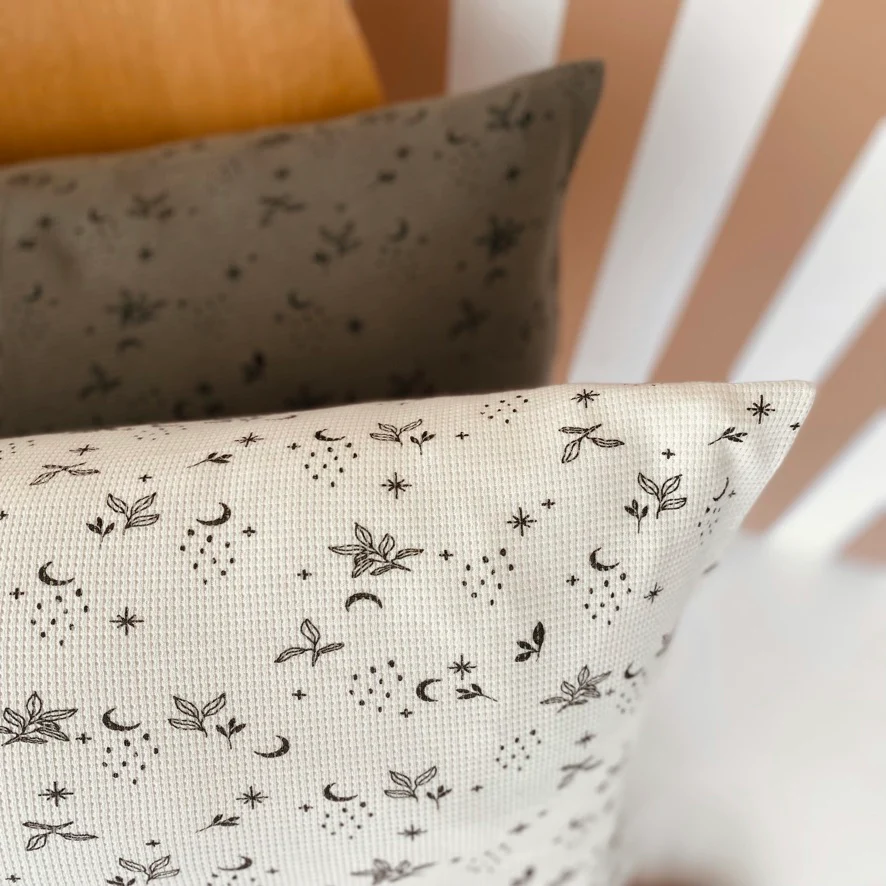 Coussins personnalisés en jersey gauffré de coton, 60x40cm. Notre garnissage est également fabriqué en France à Lille