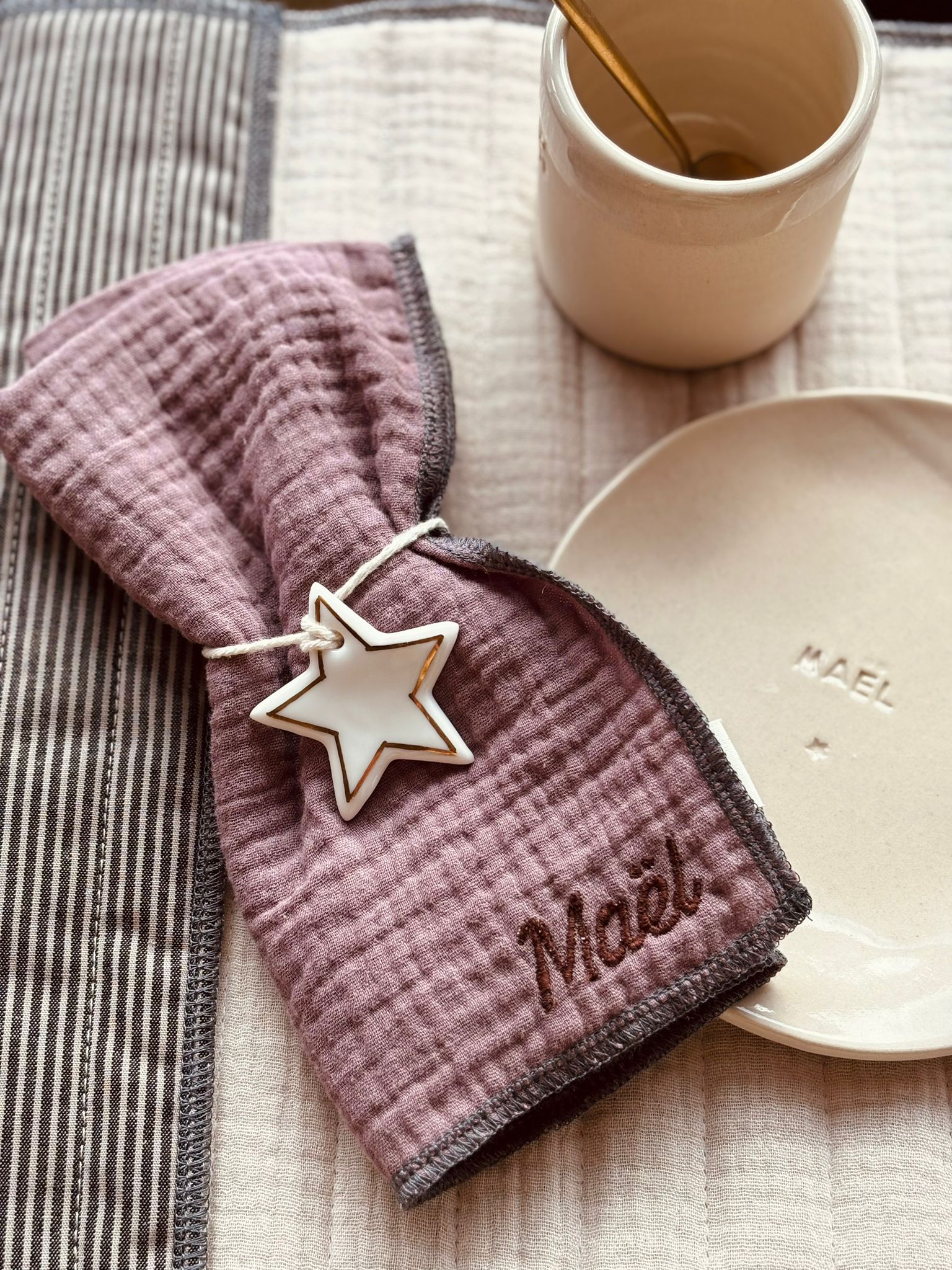 Pssst sur les photos nous ajoutons une petite étoiles en porcelaine pour accessoiriser la table…