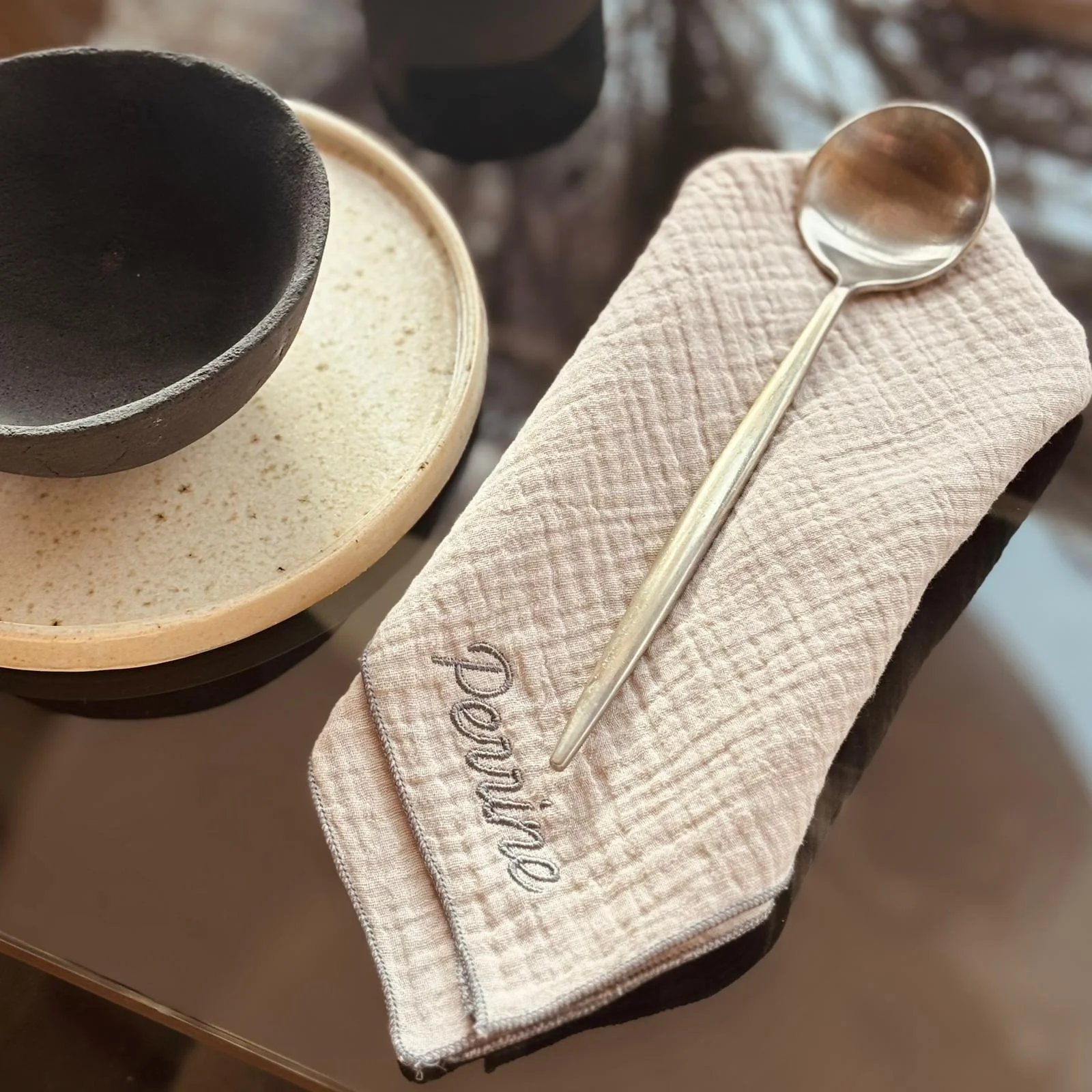 Découvrez nos jolies serviettes de table, en double gaze de coton, pour compléter la décoration de votre table. Elles sont accompagnées d’une jolie surpiqures et sont personnalisables 🙂