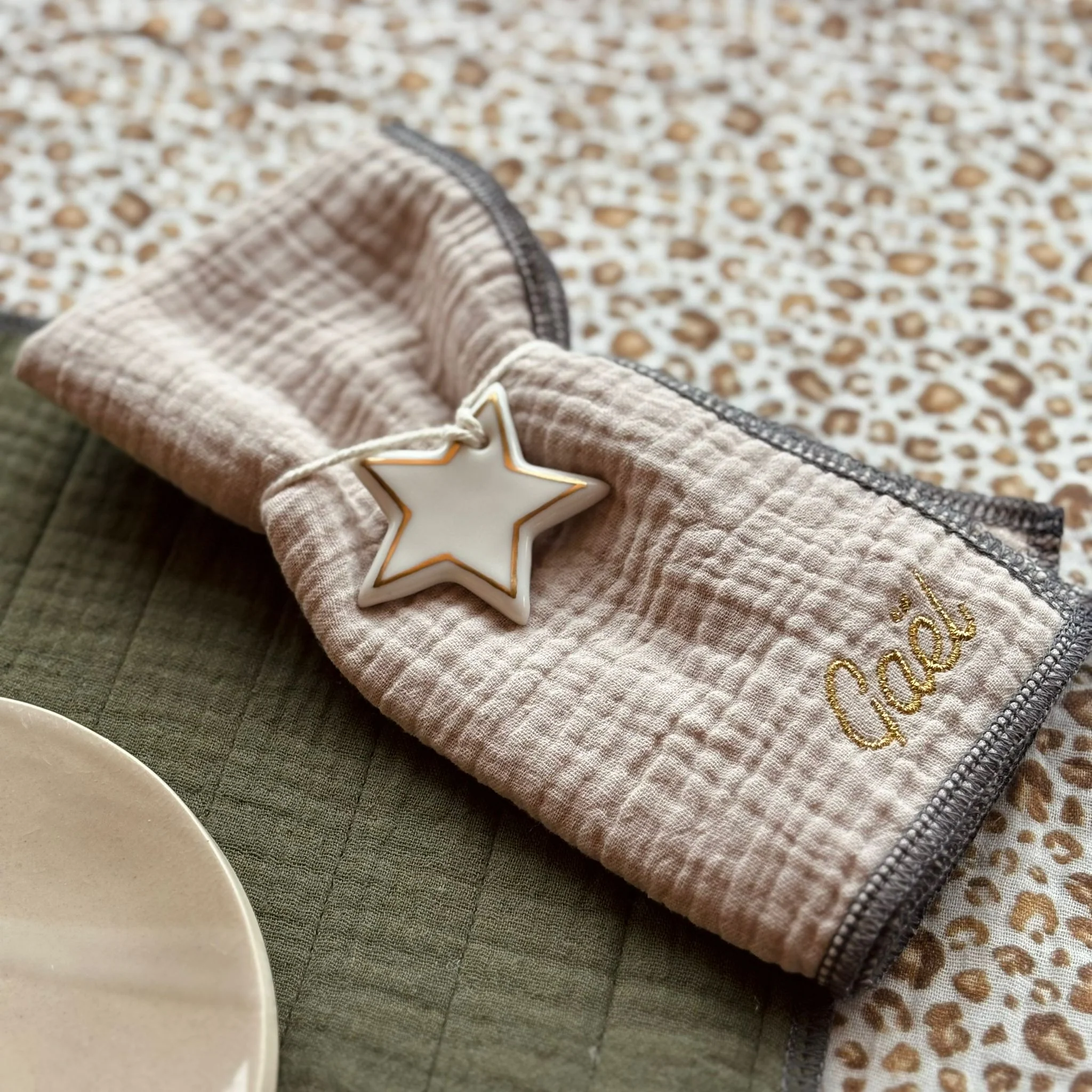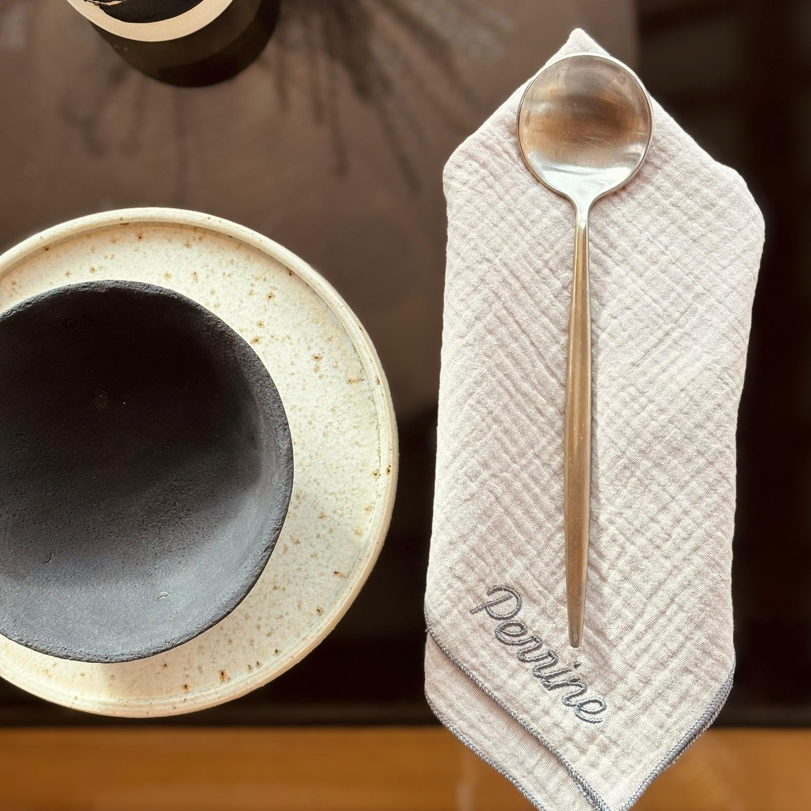 Découvrez nos jolies serviettes de table, en double gaze de coton, pour compléter la décoration de votre table. Elles sont accompagnées d’une jolie surpiqures et sont personnalisables 🙂