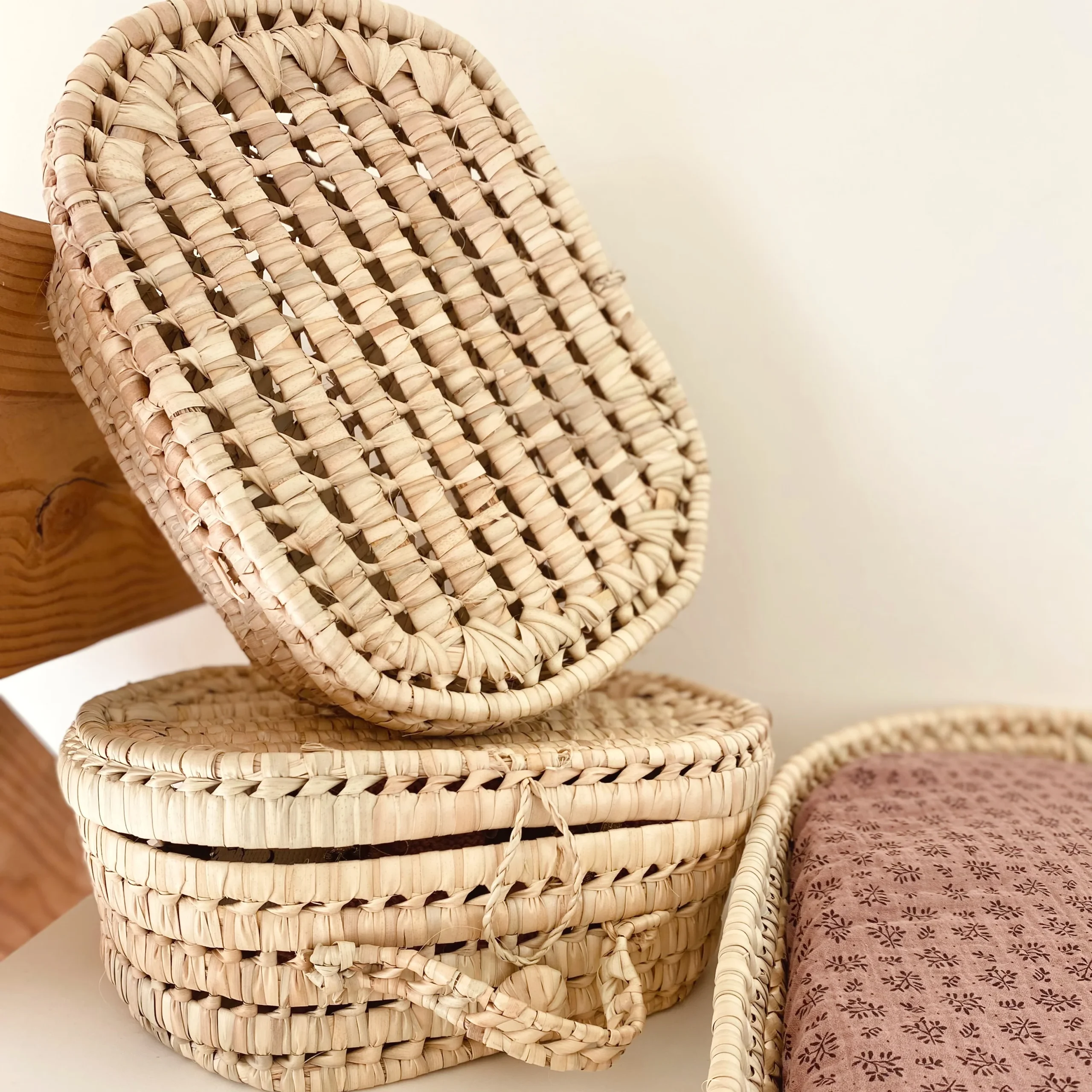 Issues de l’artisanat marocain, cette jolie vannerie en palme s’accorde à merveille à nos jolis couffins …