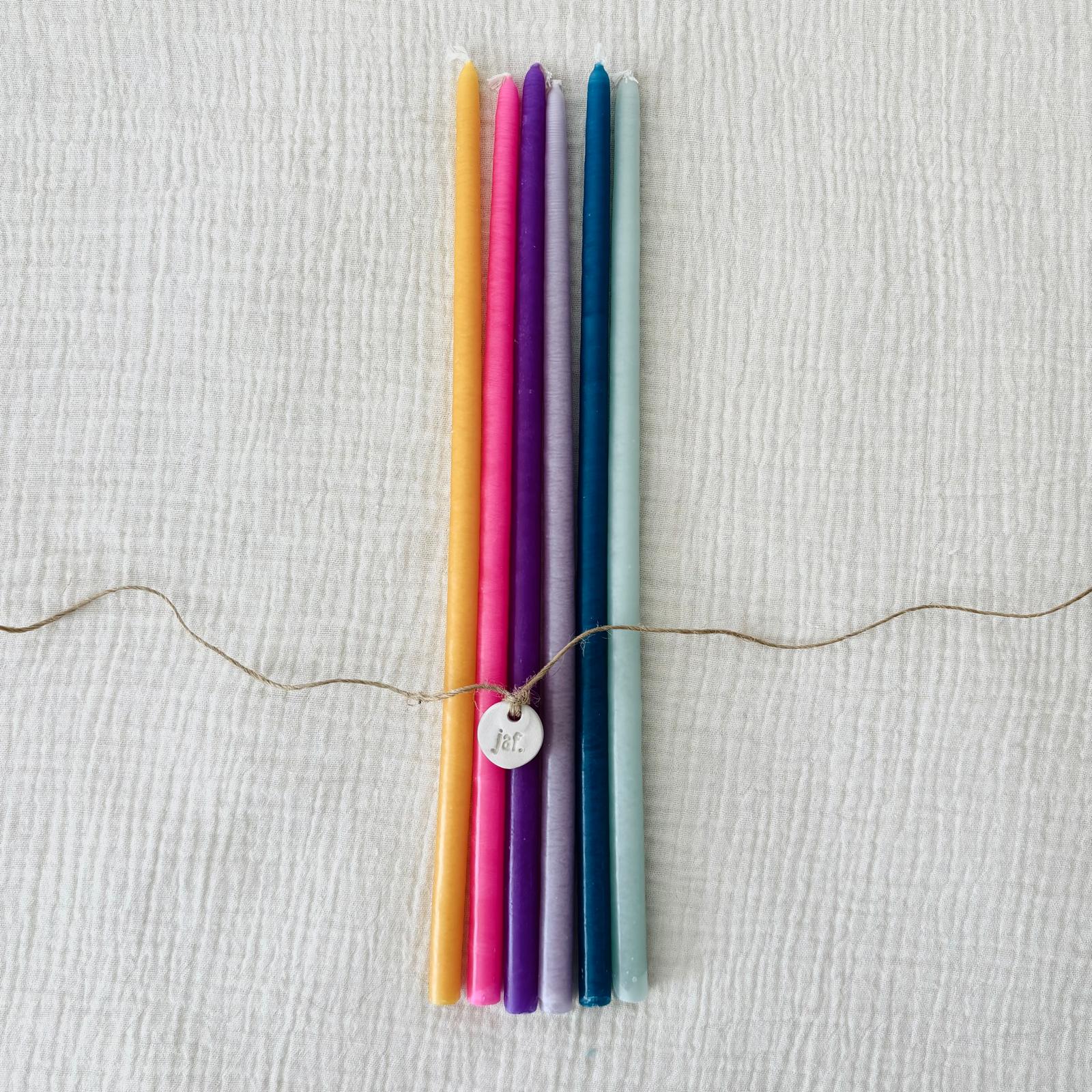 Bougies : Miel, Rose fluo, Violet, Parme, Pétrole et Vert d’eau
