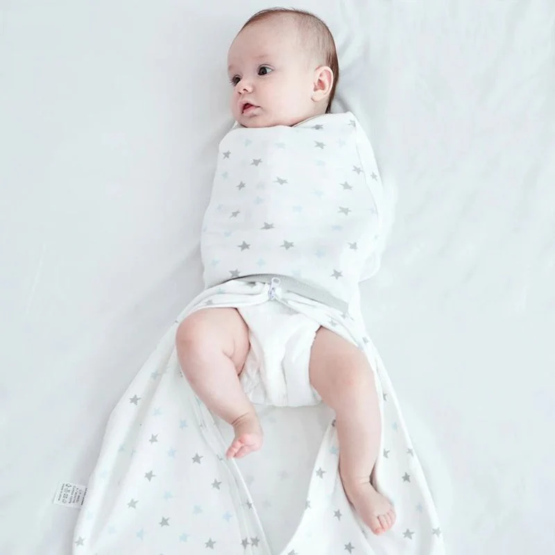 Dotée d’un design innovant, cette couverture permet un emmaillotage traditionnel avec les bras à l’intérieur pour les nouveau-nés, ou avec les bras libres pour les bébés plus grands qui aiment avoir un peu plus de mobilité. Son tissu doux et respirant orné de motifs étoilés crée un environnement apaisant pour encourager de longues heures de sommeil réparateur.