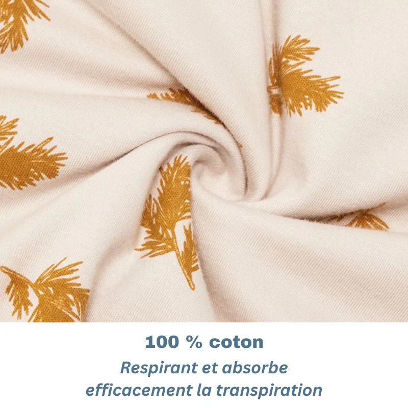 Sa matière en coton certifié assure une excellente respirabilité tout en évacuant la transpiration. Les finitions double couture renforcent la durabilité, et le col bordé évite les irritations, même après de nombreux lavages. Un véritable cocon estival pour votre petit ange.