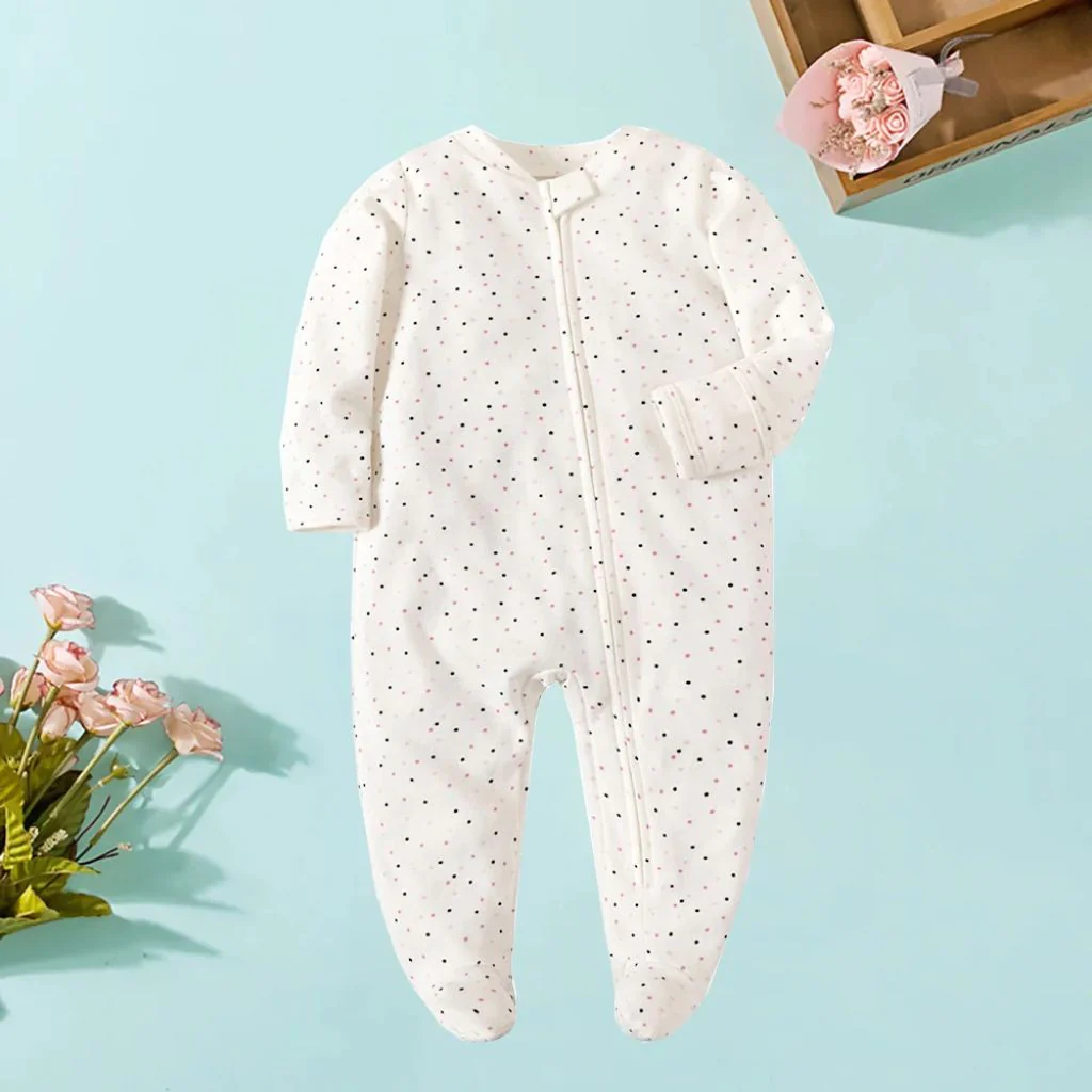 Le tissu en coton respirant maintient une température agréable, tandis que la double fermeture éclair permet d’habiller ou de changer bébé sans effort, même dans la pénombre. Un essentiel de la garde-robe de naissance, aussi fonctionnel qu’élégant.