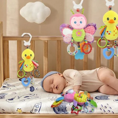 - Fonctions amusantes : carillons + froissement + miroir + anneau de dentition + noeud en tissu le tout sur une peluche aux couleurs vives et agréable au toucher.