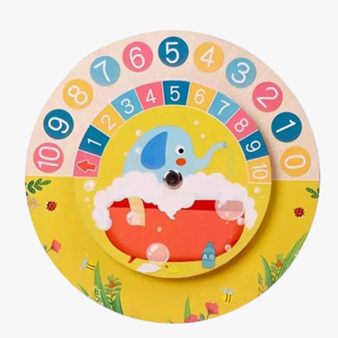 En tournant la roue, il découvrira diverses combinaisons d’addition et de soustraction, comme 6 + 4 = 10 ou 10 – 3 = 7, renforçant ainsi sa compréhension des opérations de base.