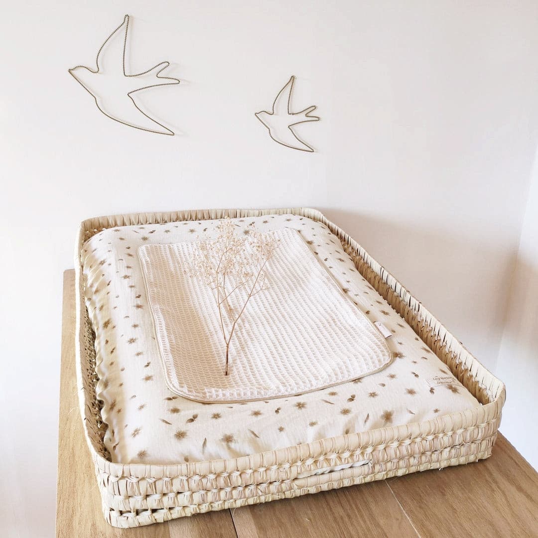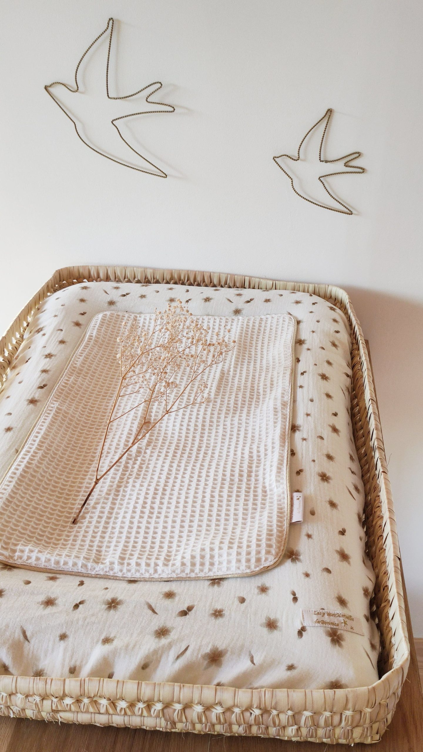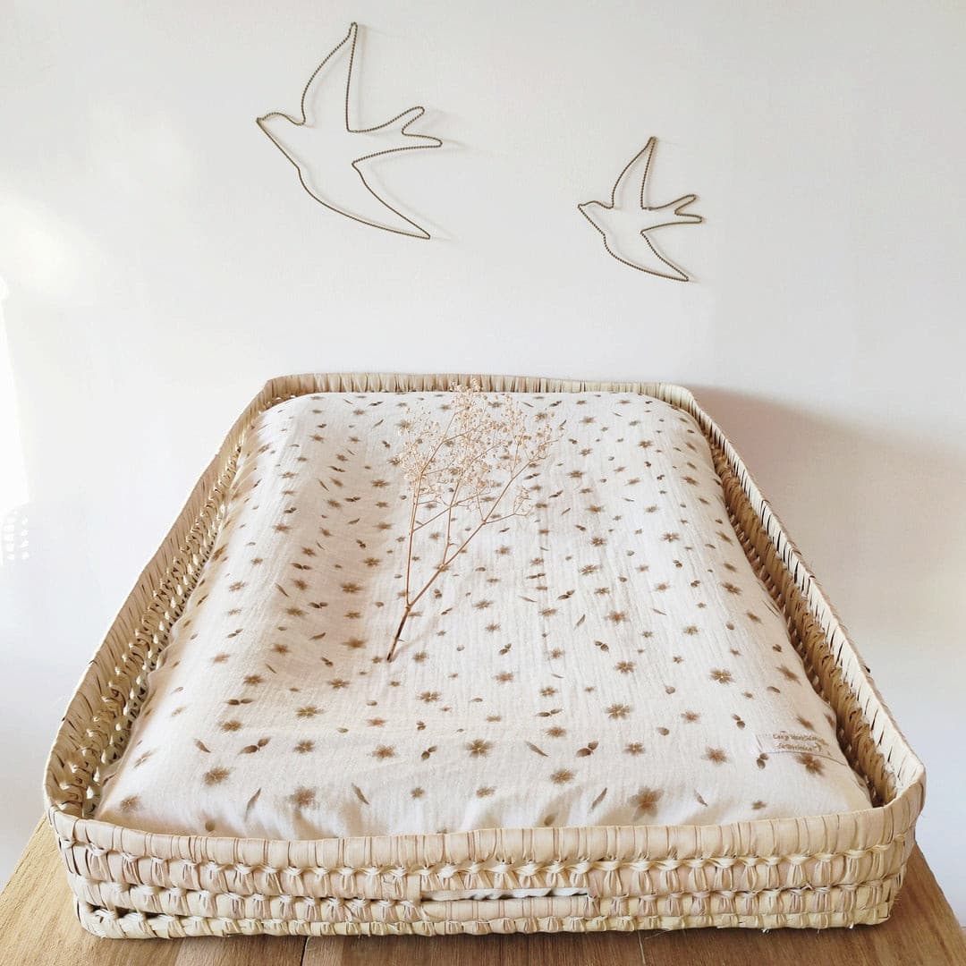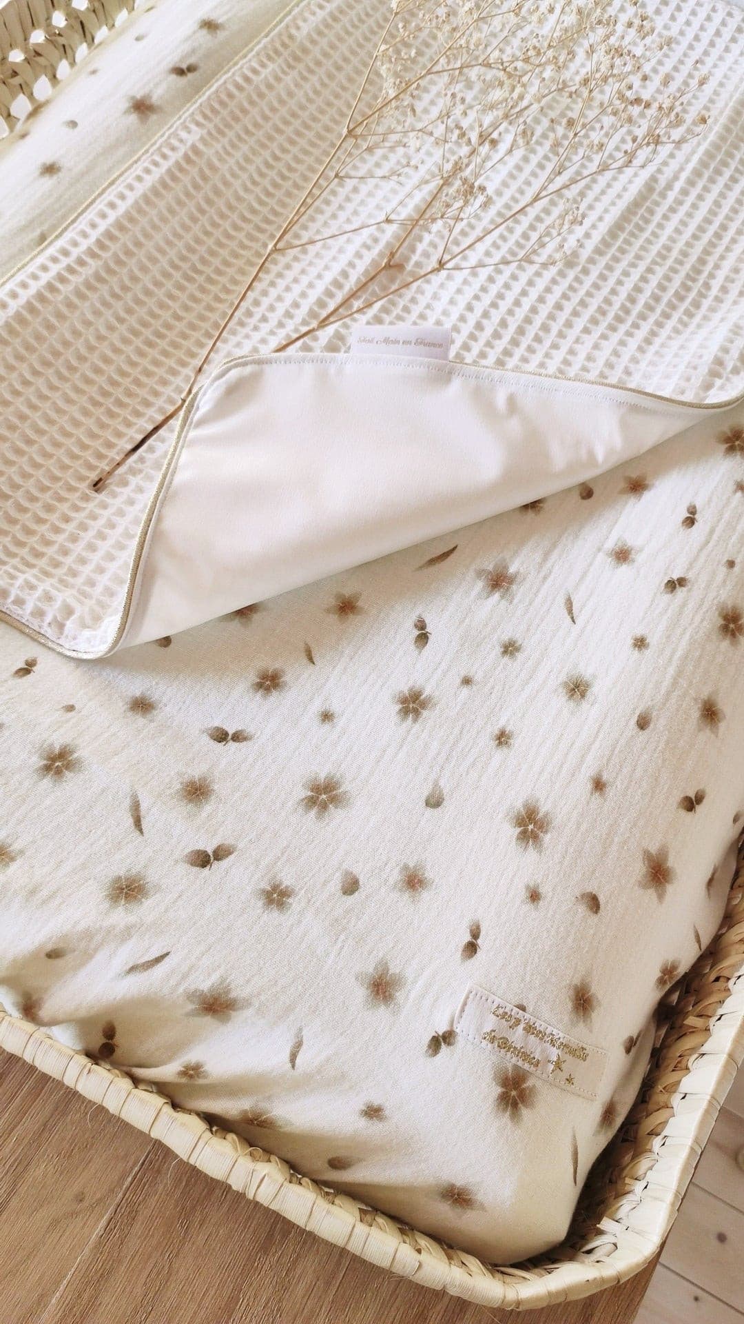 Housse de matelas à langer en double gaze de coton « Fleurs séchées »