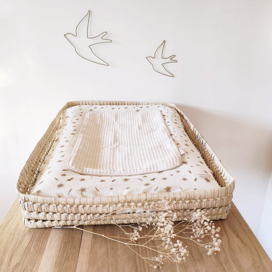 Housse de matelas à langer en double gaze de coton BIO « Oiseaux et feuillages »
