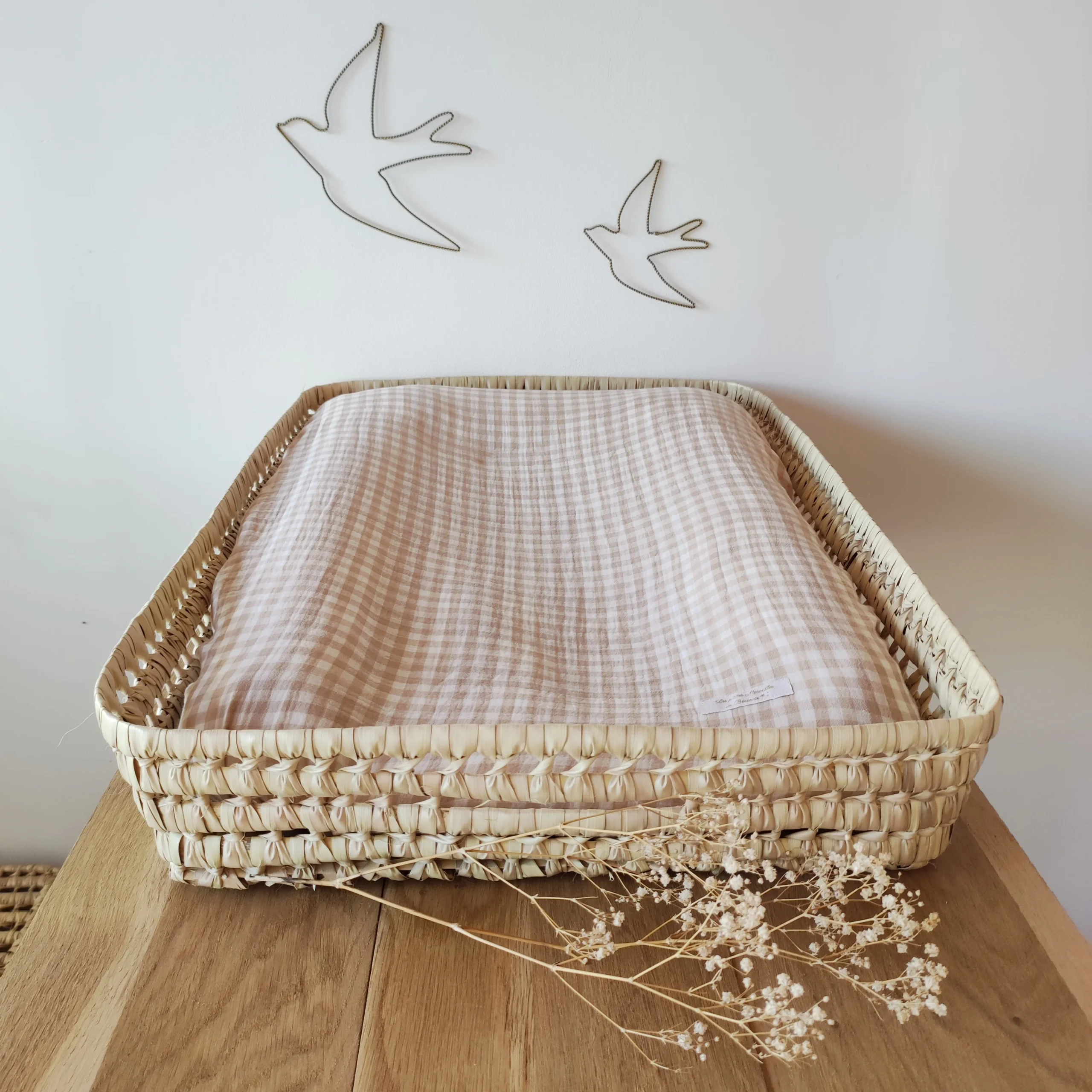 Housse de matelas à langer en double gaze de coton « Fleurs séchées »