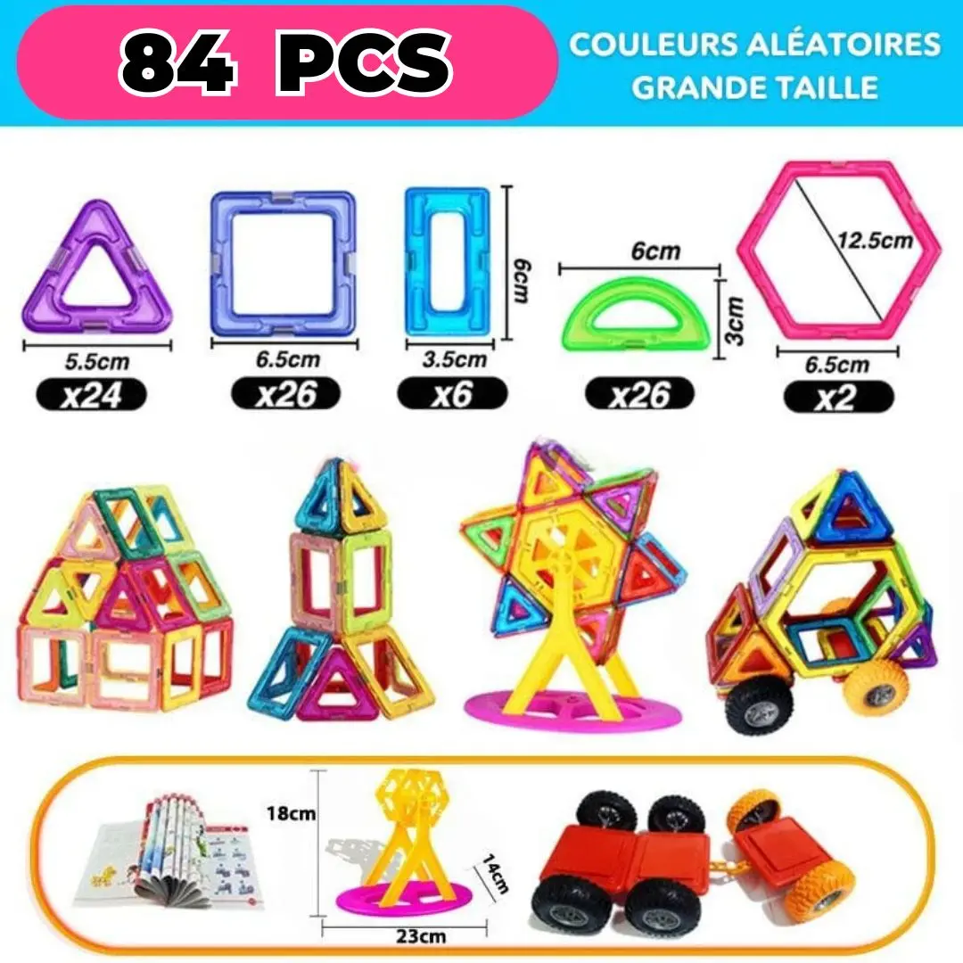 Ce jeu aimanté permet de construire, démonter et reconstruire, stimulant ainsi la créativité et la résolution de problèmes.