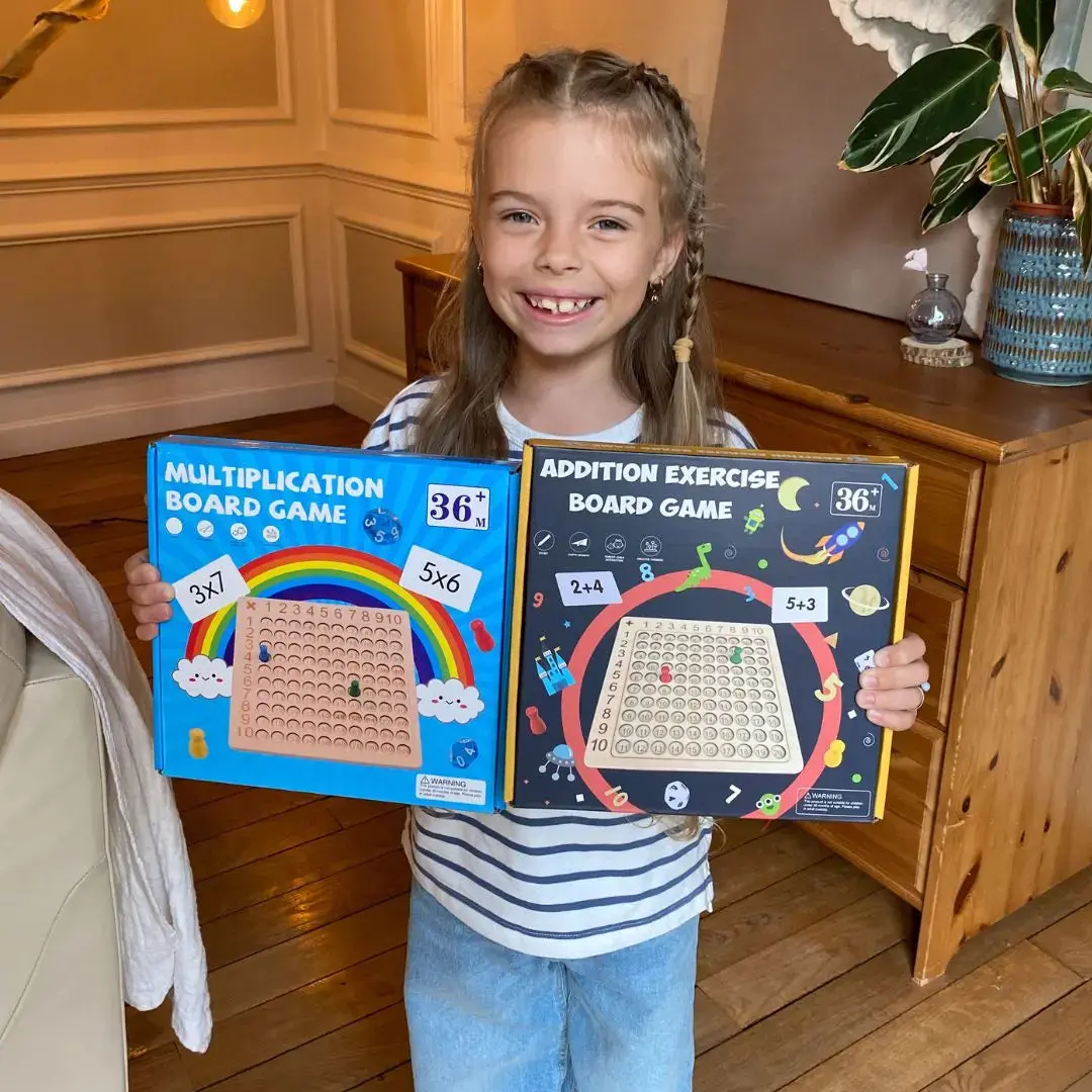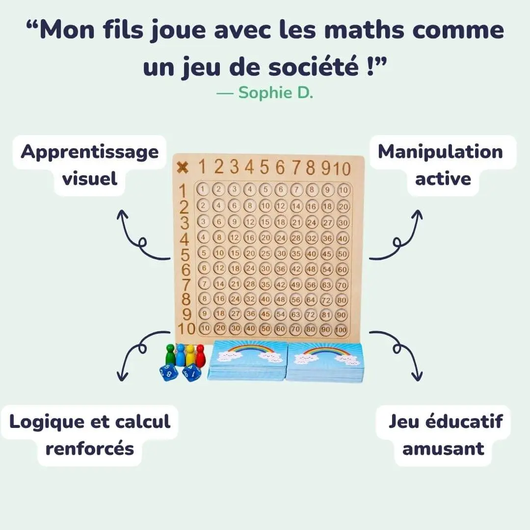 Numérofun™ est un Jeu de Maths Montessori captivant qui transforme les multiplications en moments de plaisir, de réflexion et de complicité.