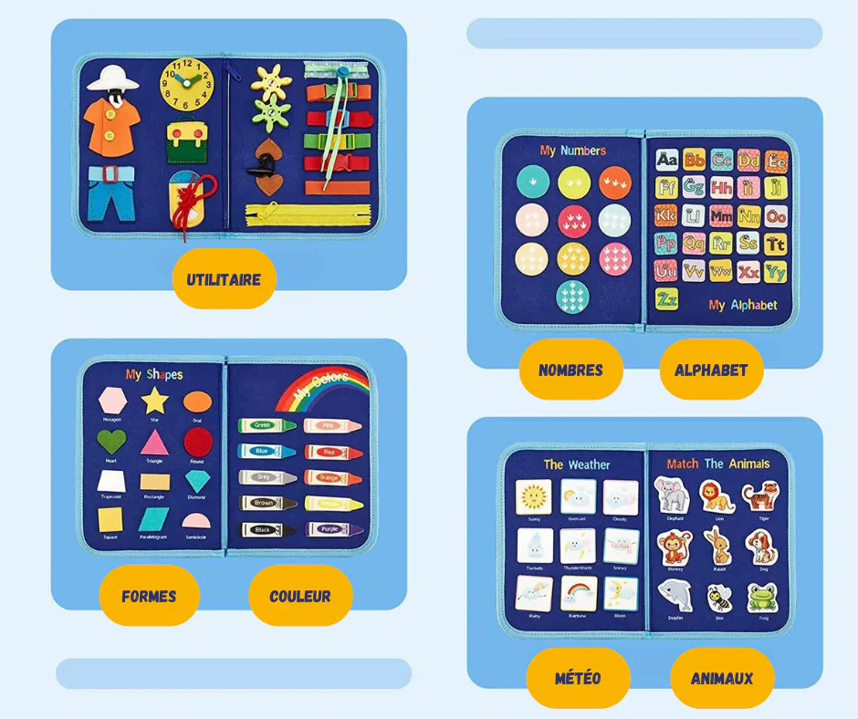 Ce sac d’activités multifonctionnel est équipé de 7 en 1 activités :