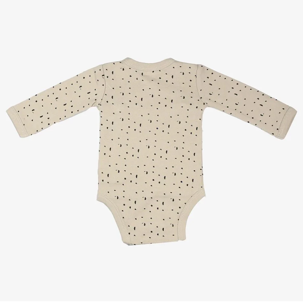 Coloris blanc et café au lait (nude) rehaussé d’un imprimé ethnique tacheté noir, parfait pour filles et garçons.