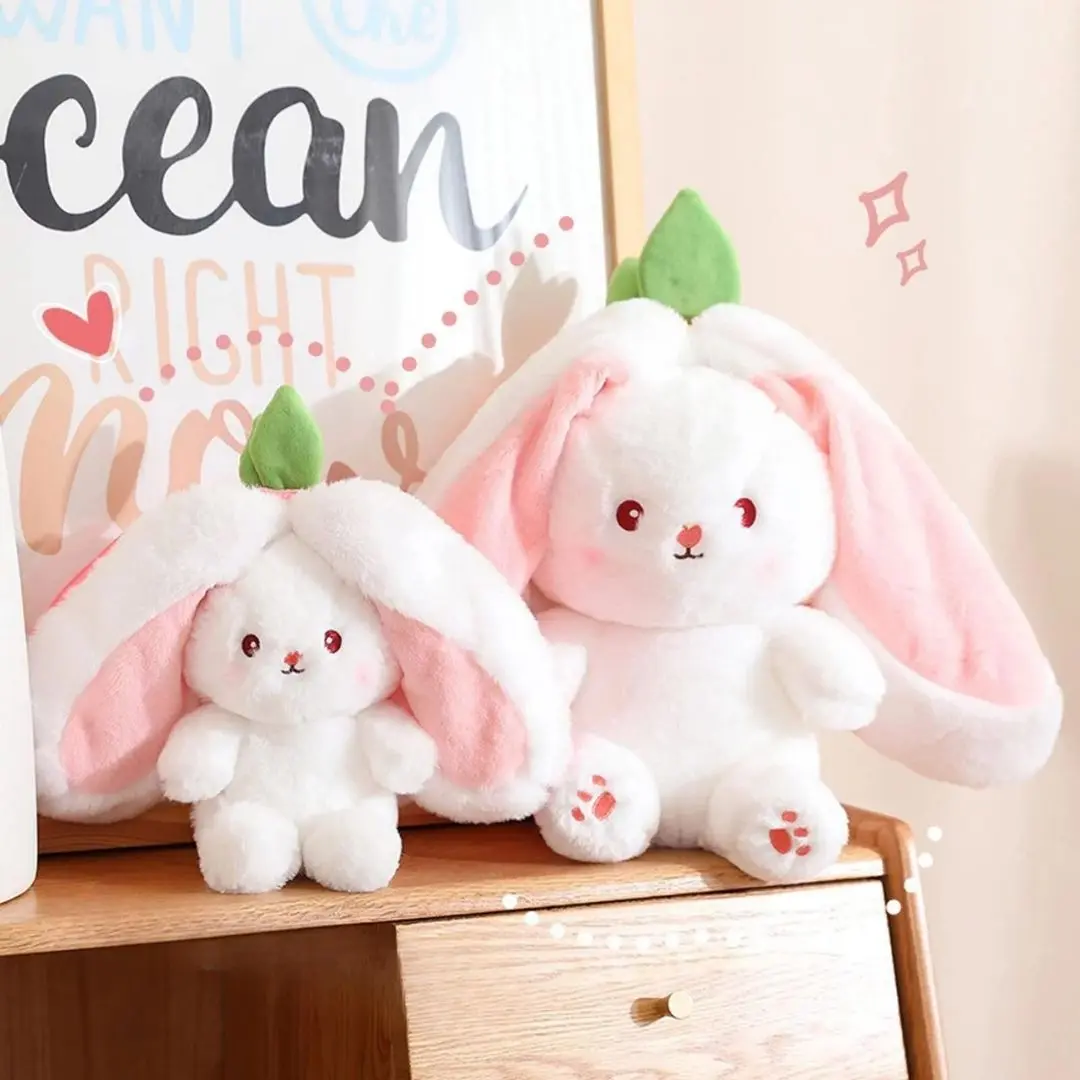 Découvrez Lapinou Magique™, la peluche qui se transforme soit en une délicieuse fraise, soit en une carotte nutritive en un clin d’œil !