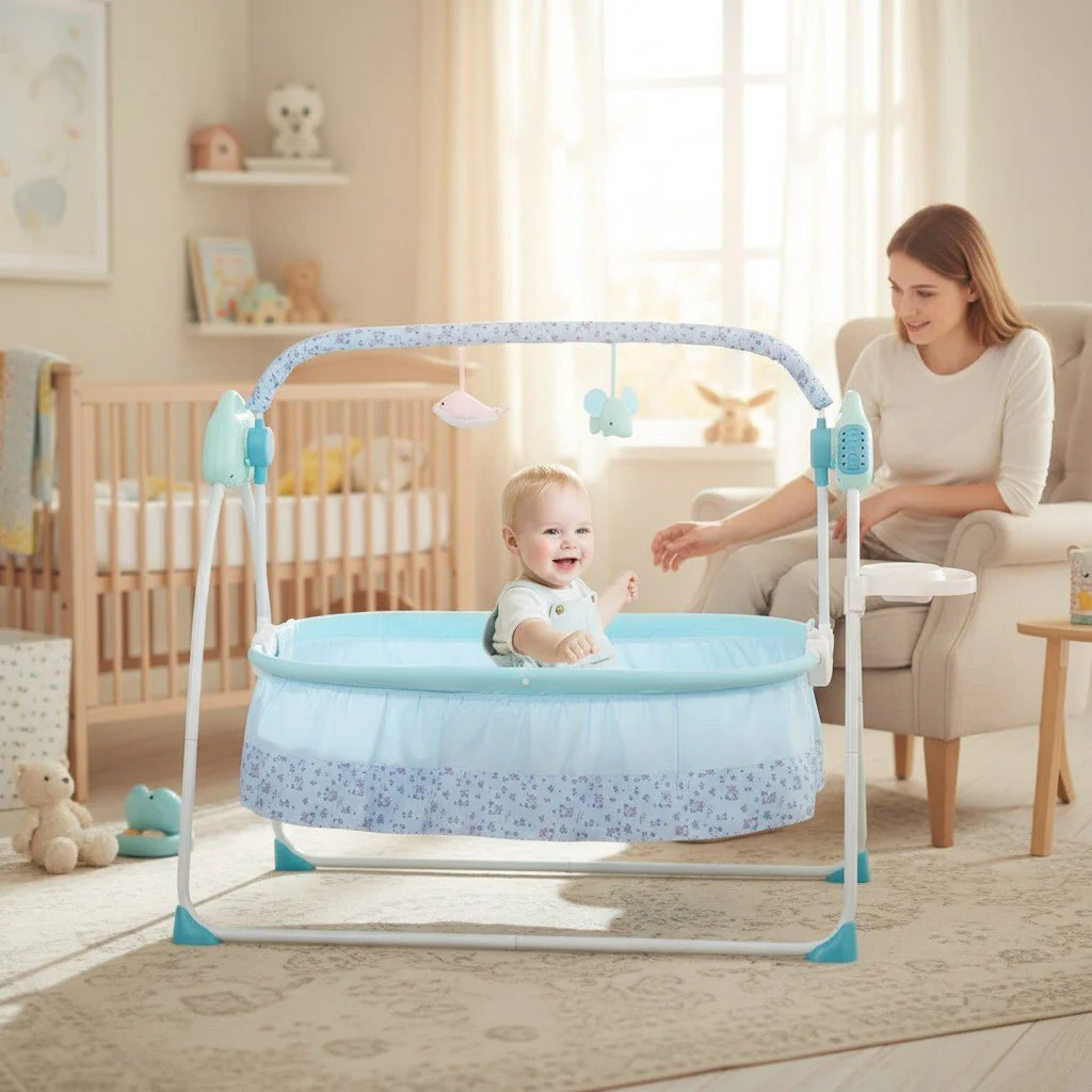 Le tapis rembourré de 2 cm apporte un confort supplémentaire, et le câble USB de 1,8 m garantit une installation simple et flexible. Léger et maniable avec un poids net de 5,6 kg, ce modèle est livré avec une balançoire de berceau complète, un support de bouteille, un contrôleur, un câble USB et un manuel en anglais, pour une utilisation immédiate et sans complication.